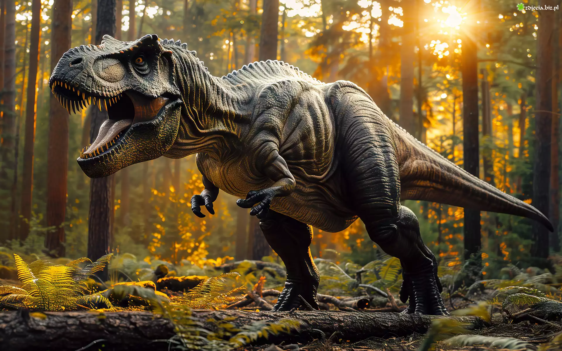 Zdjęcie Grafika, Dinozaur, Tyranozaur, Las, Promienie słońca