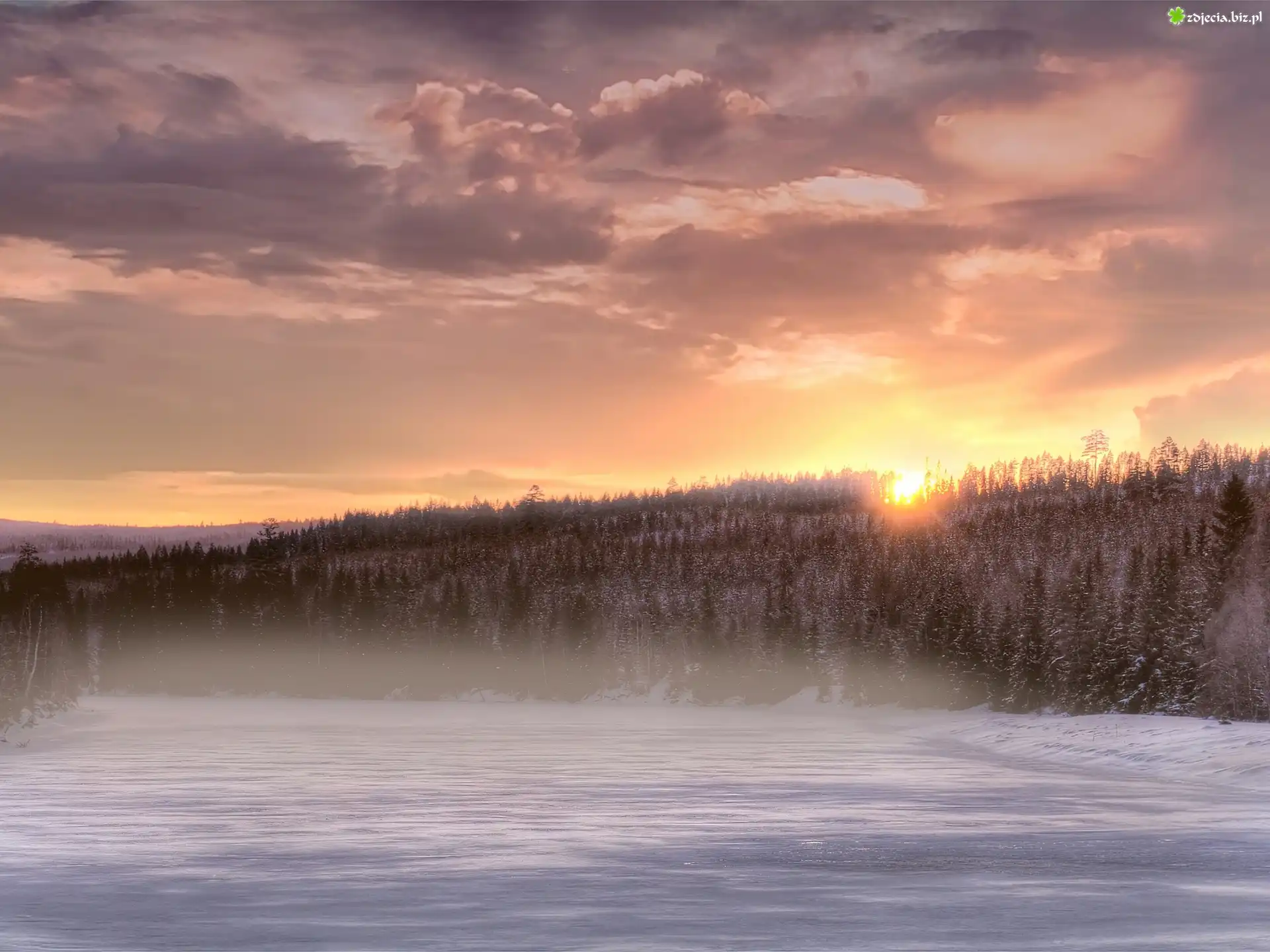 Zdjęcie Las, Zachód, Słońca, Śnieg