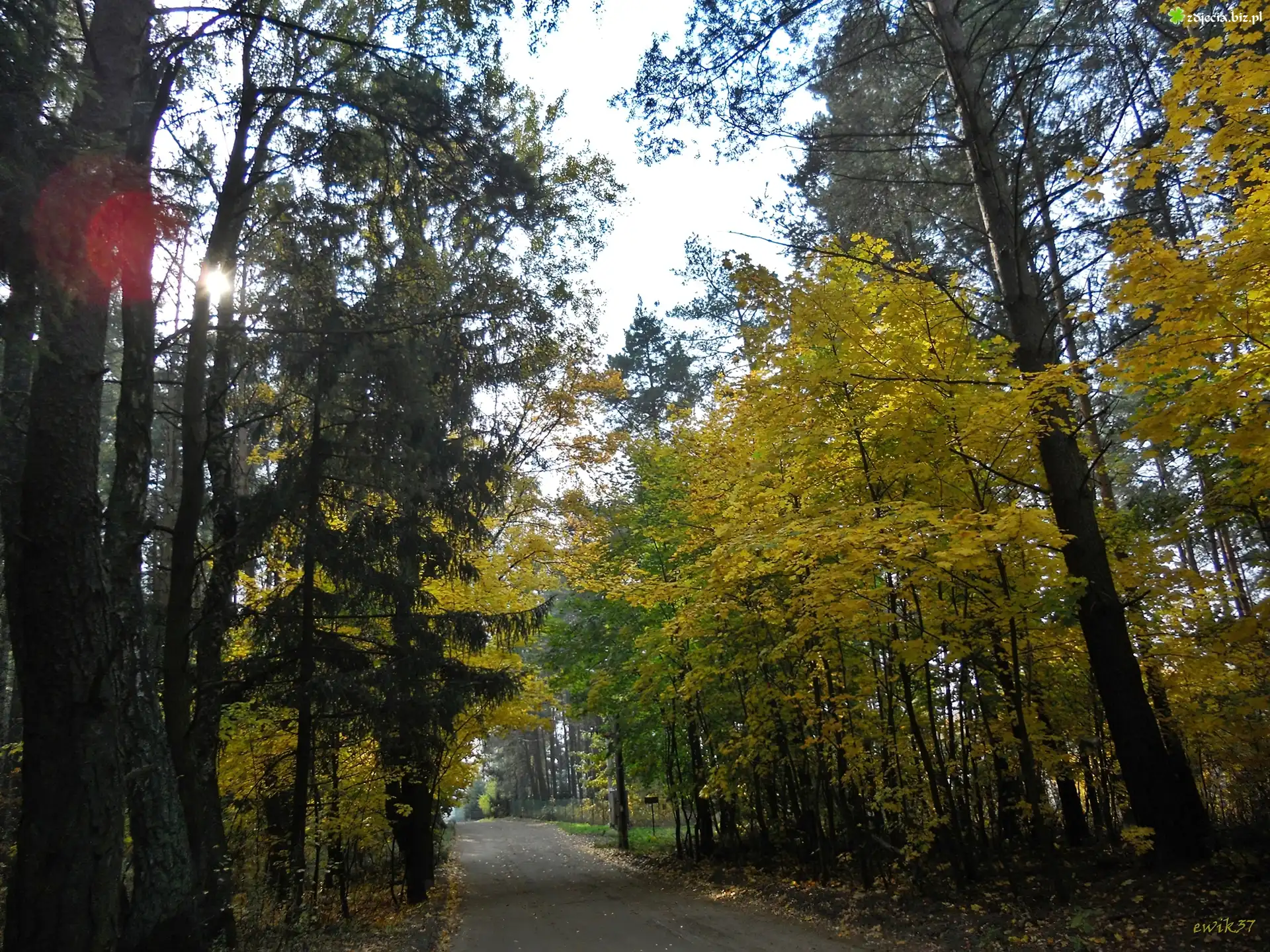 Zdjęcie Las, Drzewa, Droga, Słoneczne, Promienie