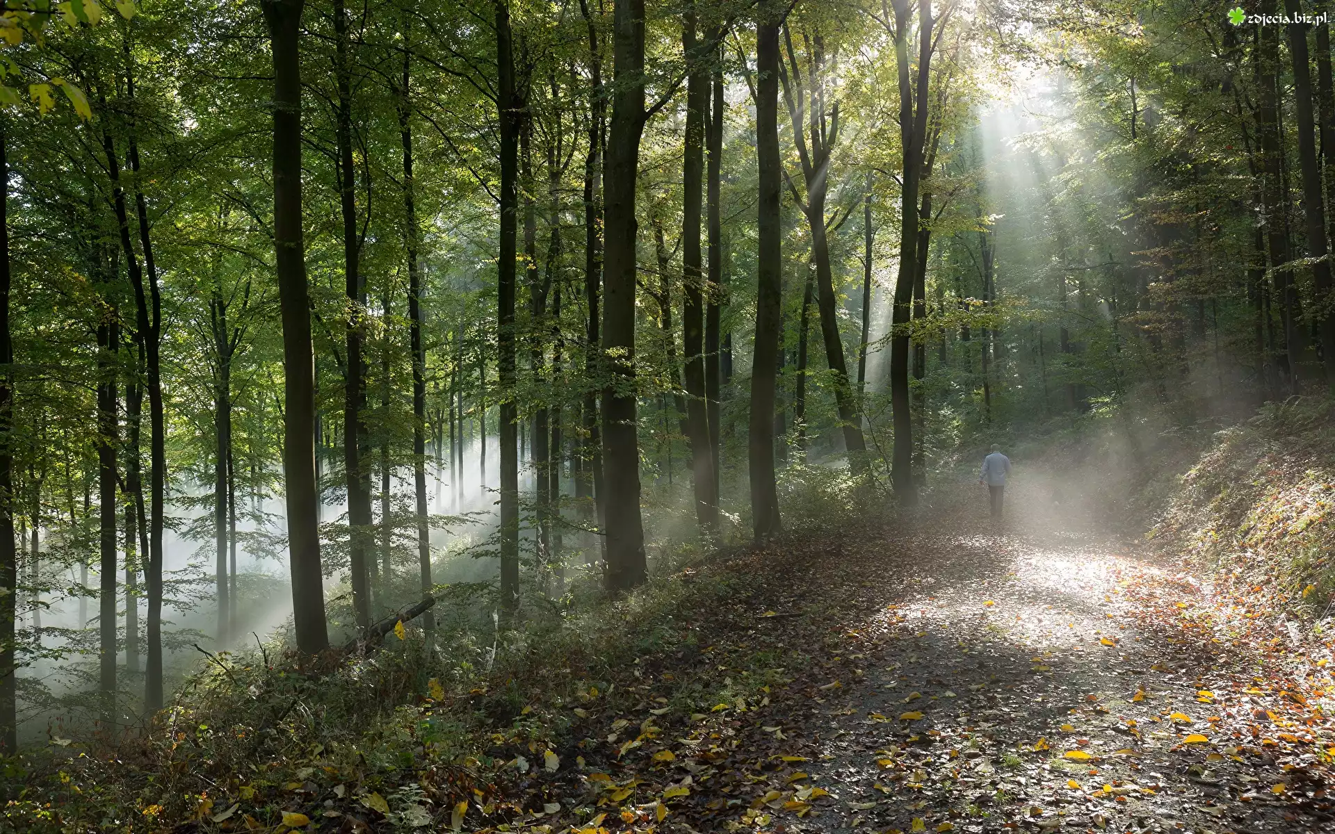 Zdjęcie Las, Drzewa, Przebijające światło, Słoneczne, Droga