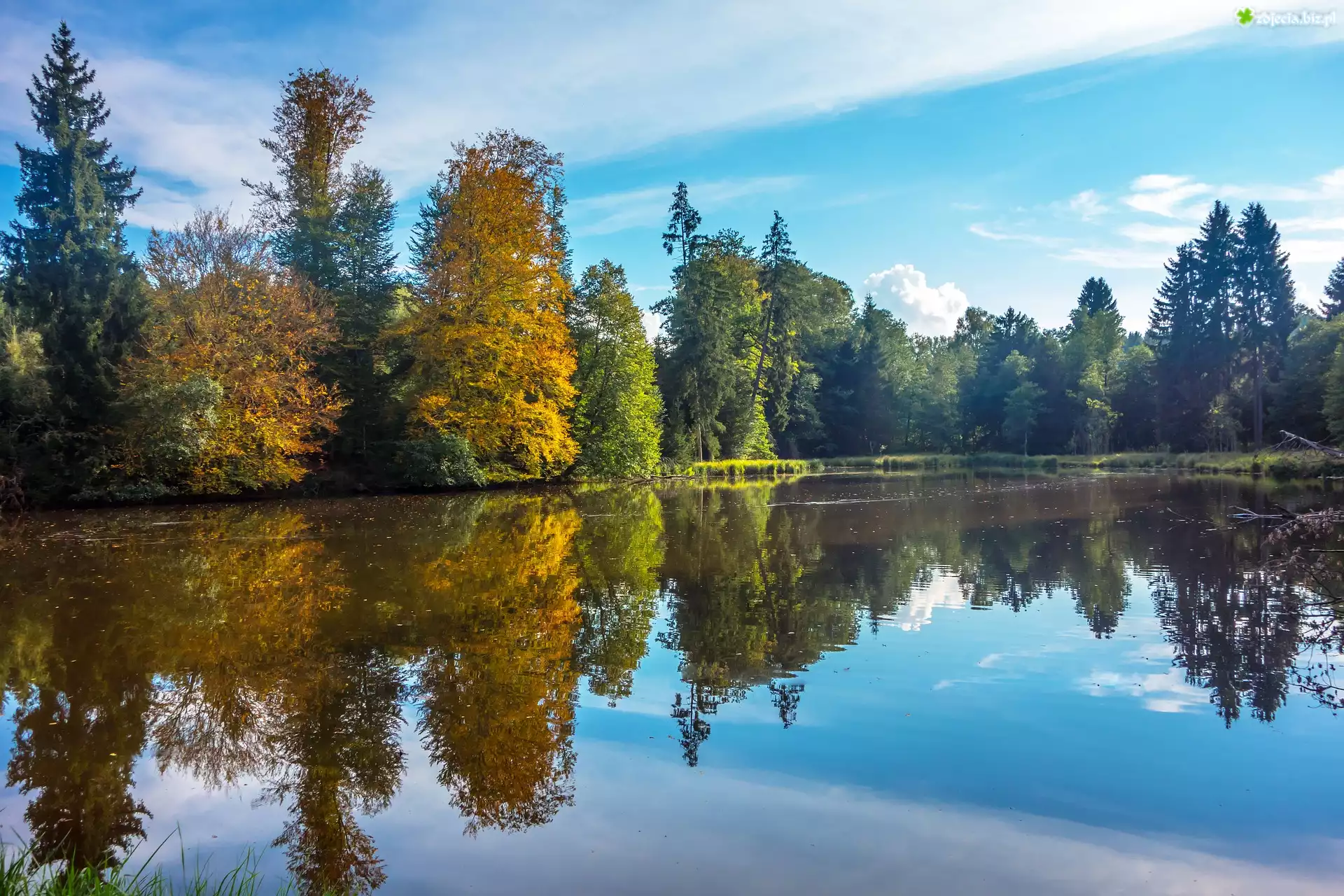 Zdjęcie Drzewa, Las, Staw, Odbicie, Jesień