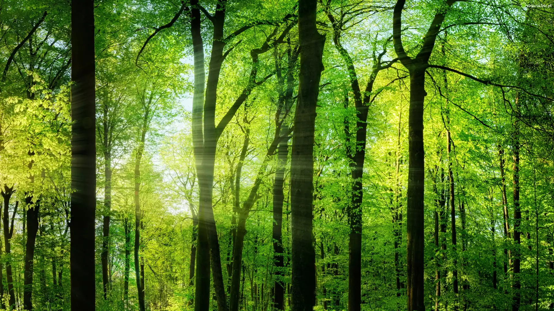 Zdjęcie Las, Drzewa, Przebijające światło, Smugi