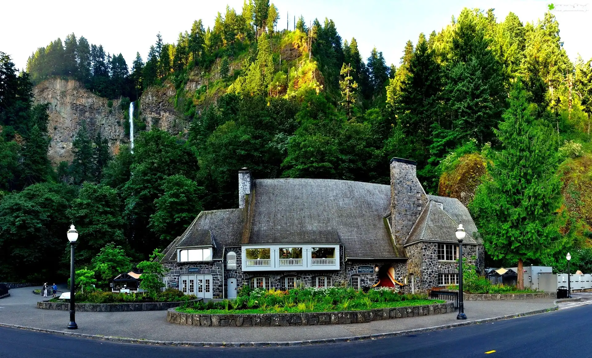 Zdjęcie, Góry, Las, Droga, Restauracja, Hrabstwo Multnomah, Oregon, USA
