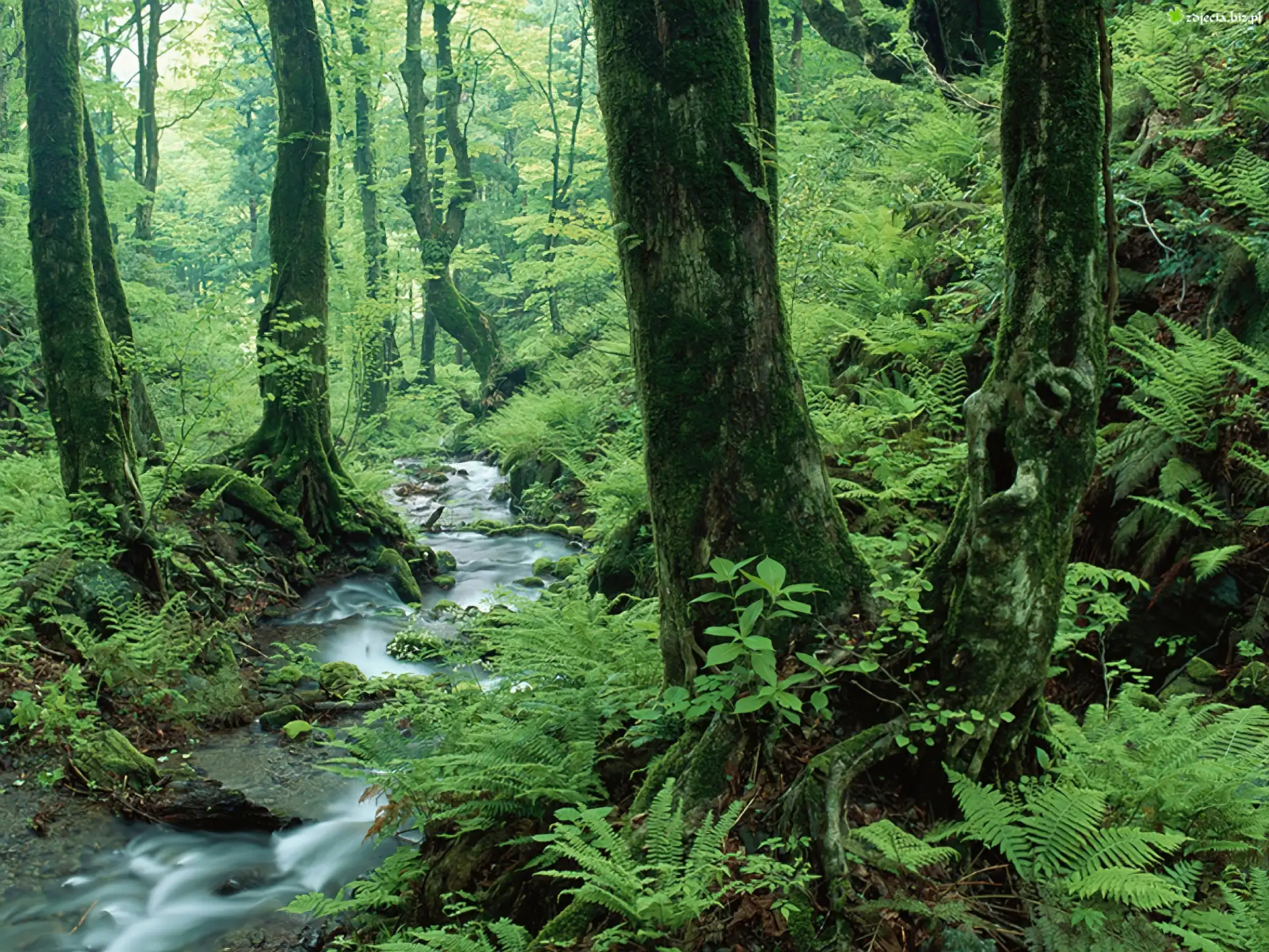 Zdjęcie Las, Zielone, Drzewa, Rośliny, Wąski, Strumyk
