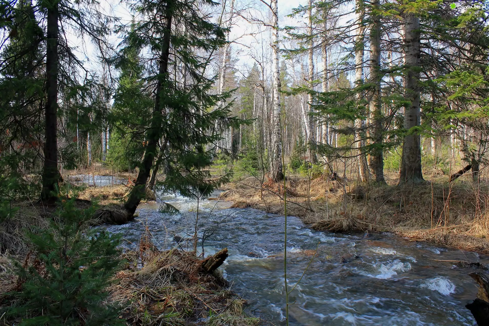 Zdjęcie Las, Rzeka, Przebijające, Światło, Wiosna