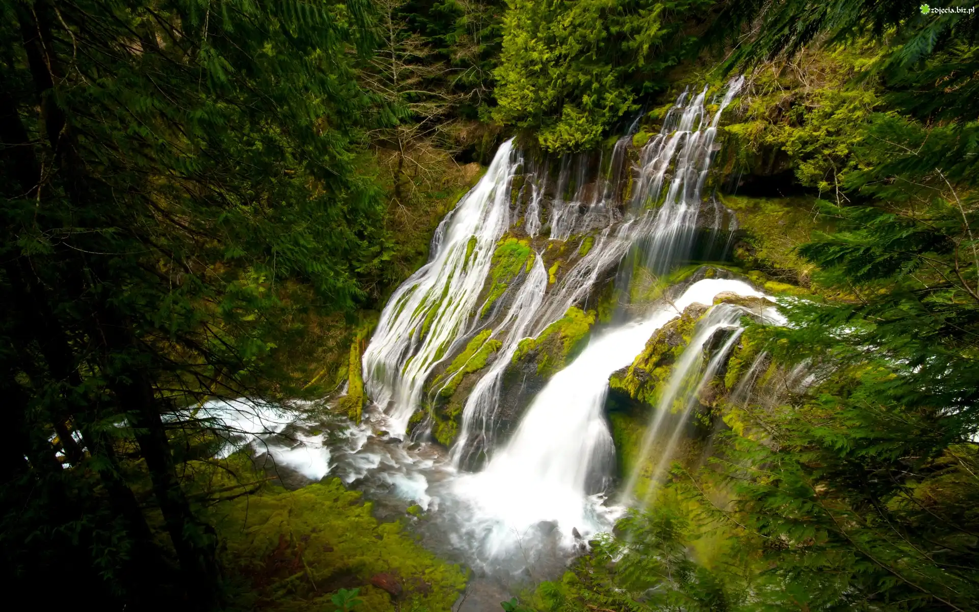 Zdjęcie, Wodospad Panther Creek Falls, Stan Waszyngton, Stany Zjednoczone Las, Drzewa