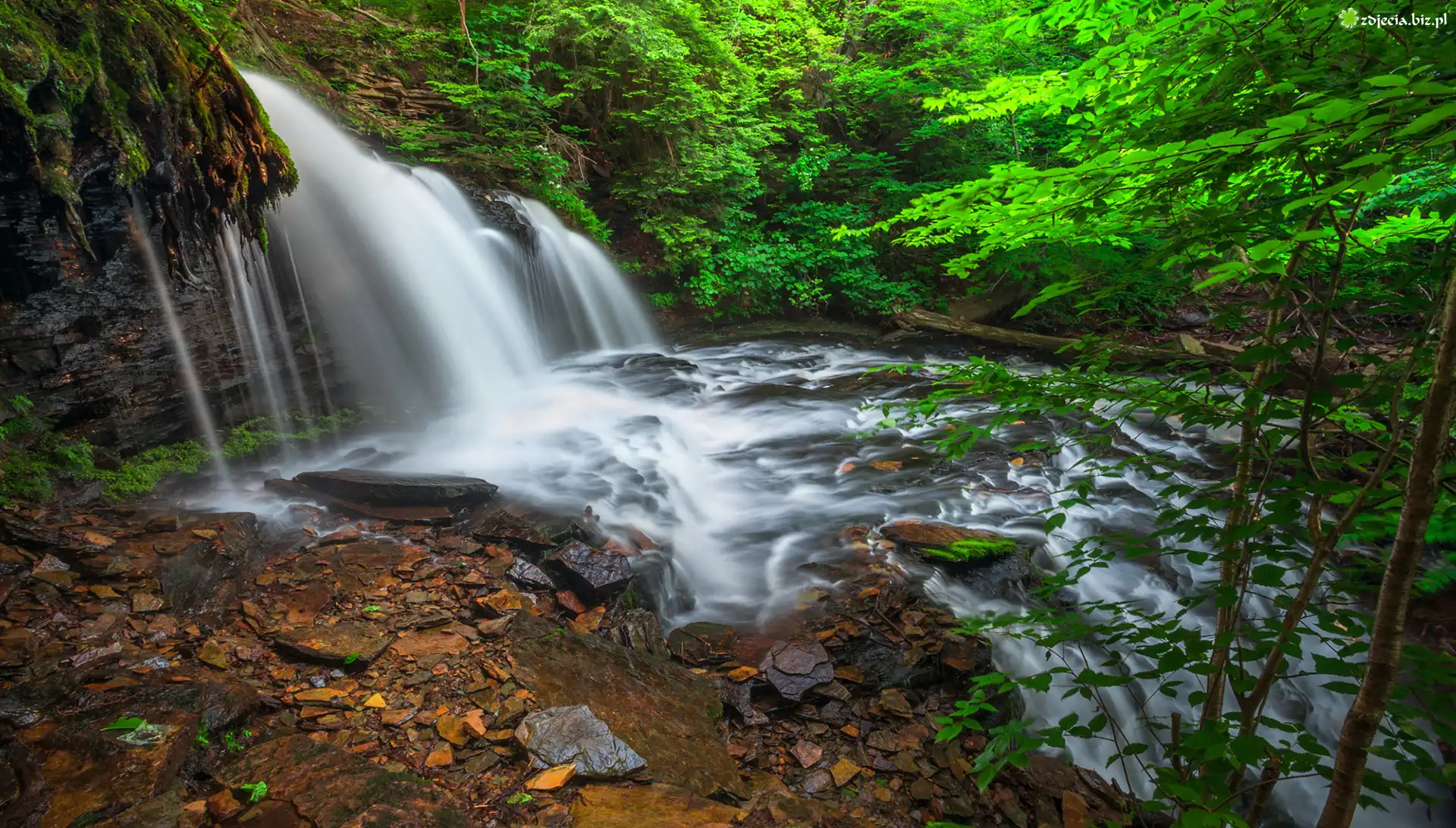 Zdjęcie Las, Drzewa, Wodospad, Kamienie