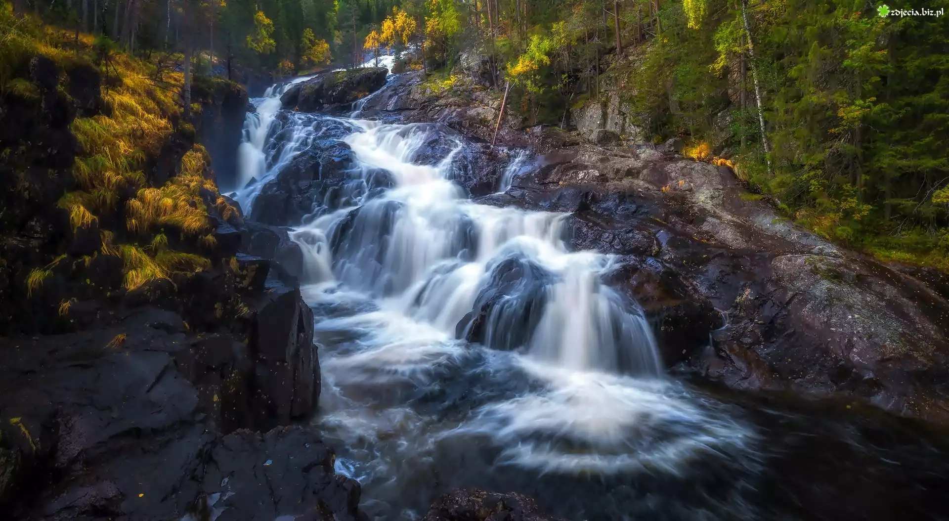 Zdjęcie Wodospad, Las, Skały