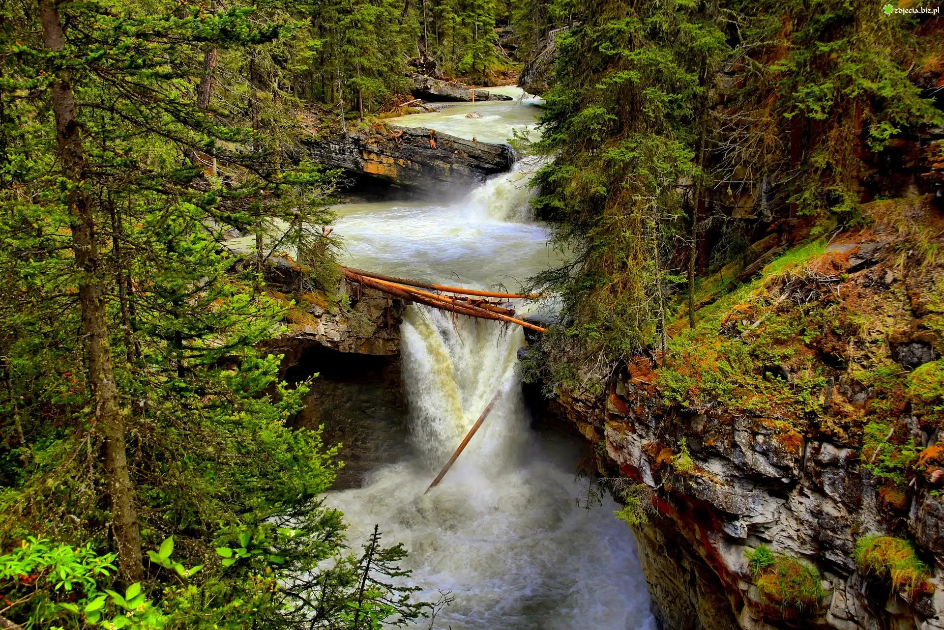 Zdjęcie Las, Skały, Wodospad, Rzeka