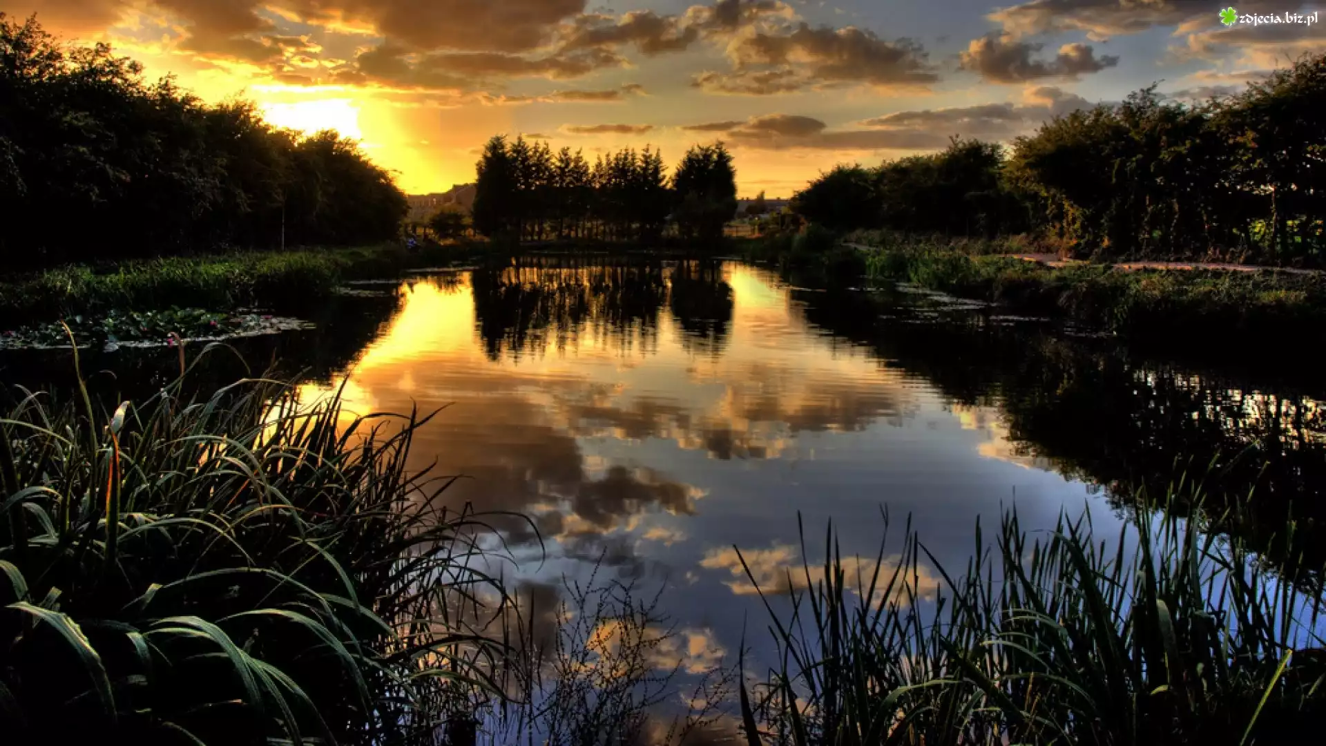 Zdjęcie Las, Jezioro, Zachód, Słońca