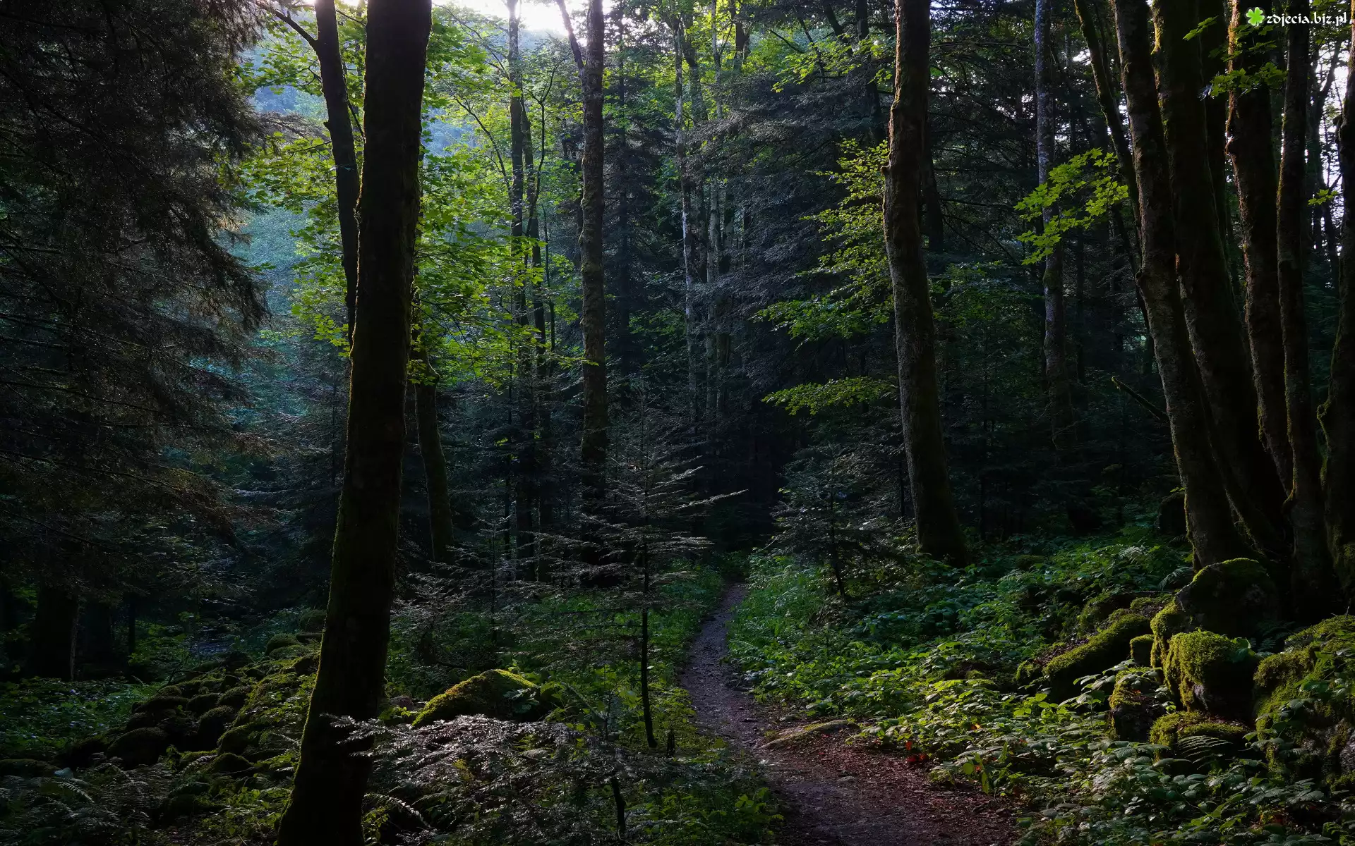 Zdjęcie Las, Drzewa, Gałęzie, Kamienie, Zarośla, Ścieżka