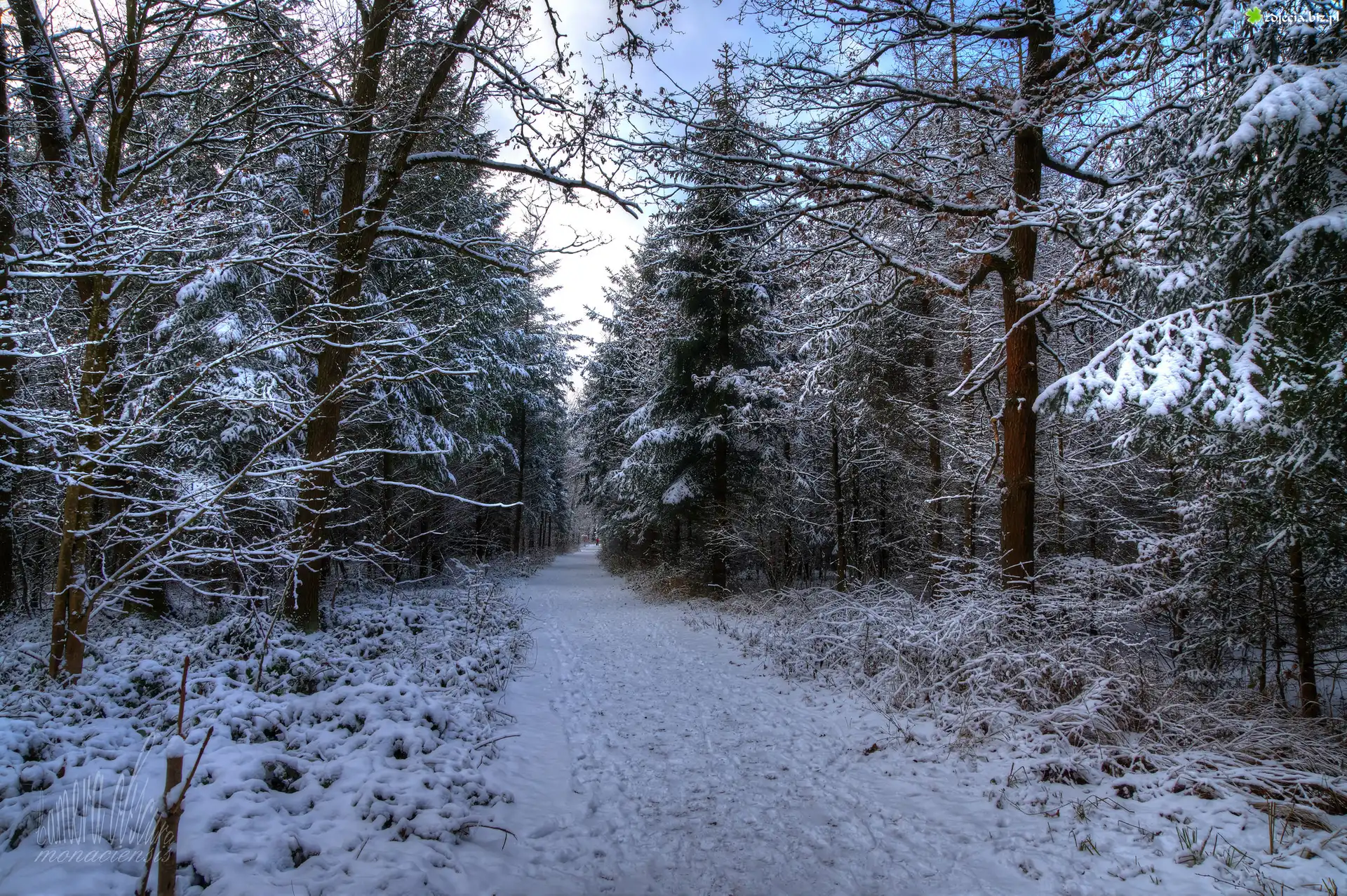 Zdjęcie Las, Droga, Drzewa, Zima, Śnieg