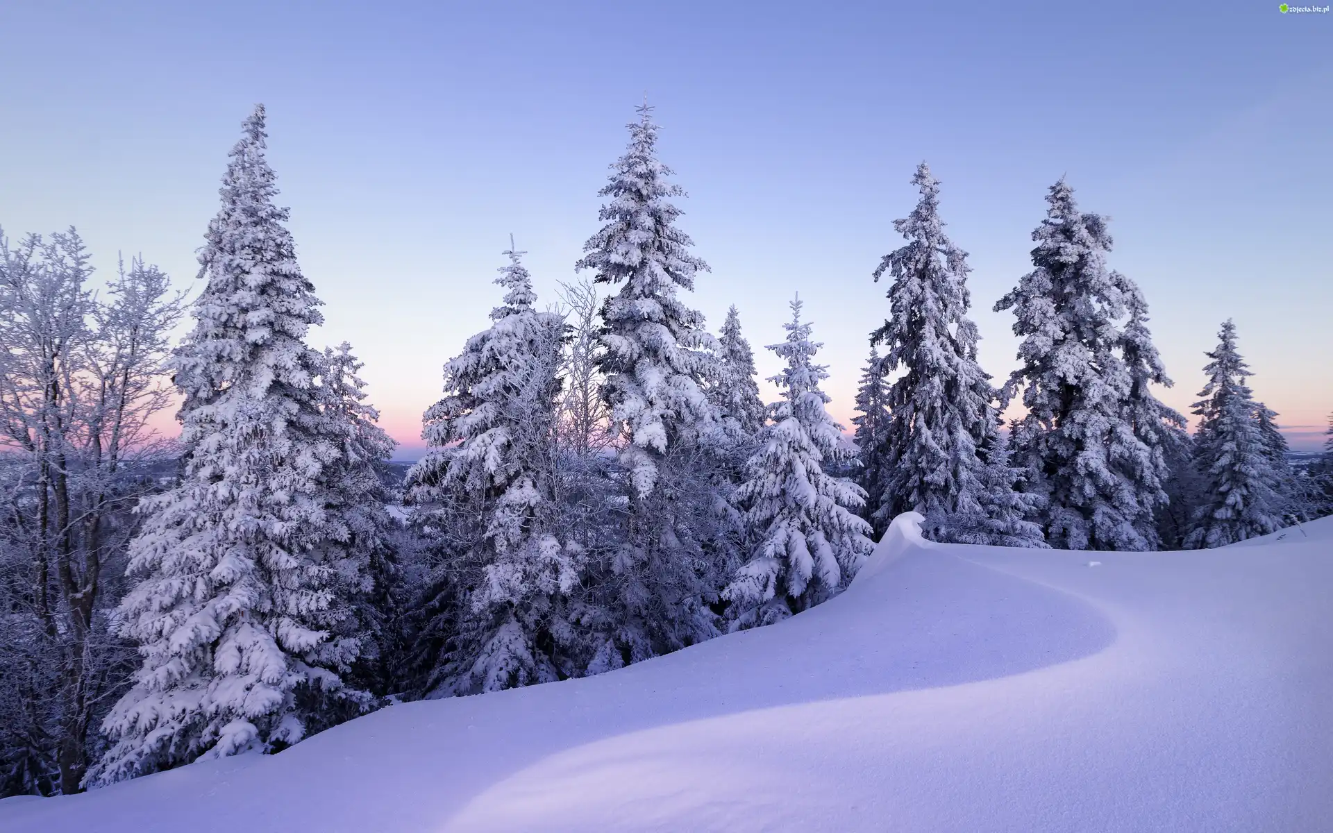 Zdjęcie Las, Drzewa, Zima, Zaspa