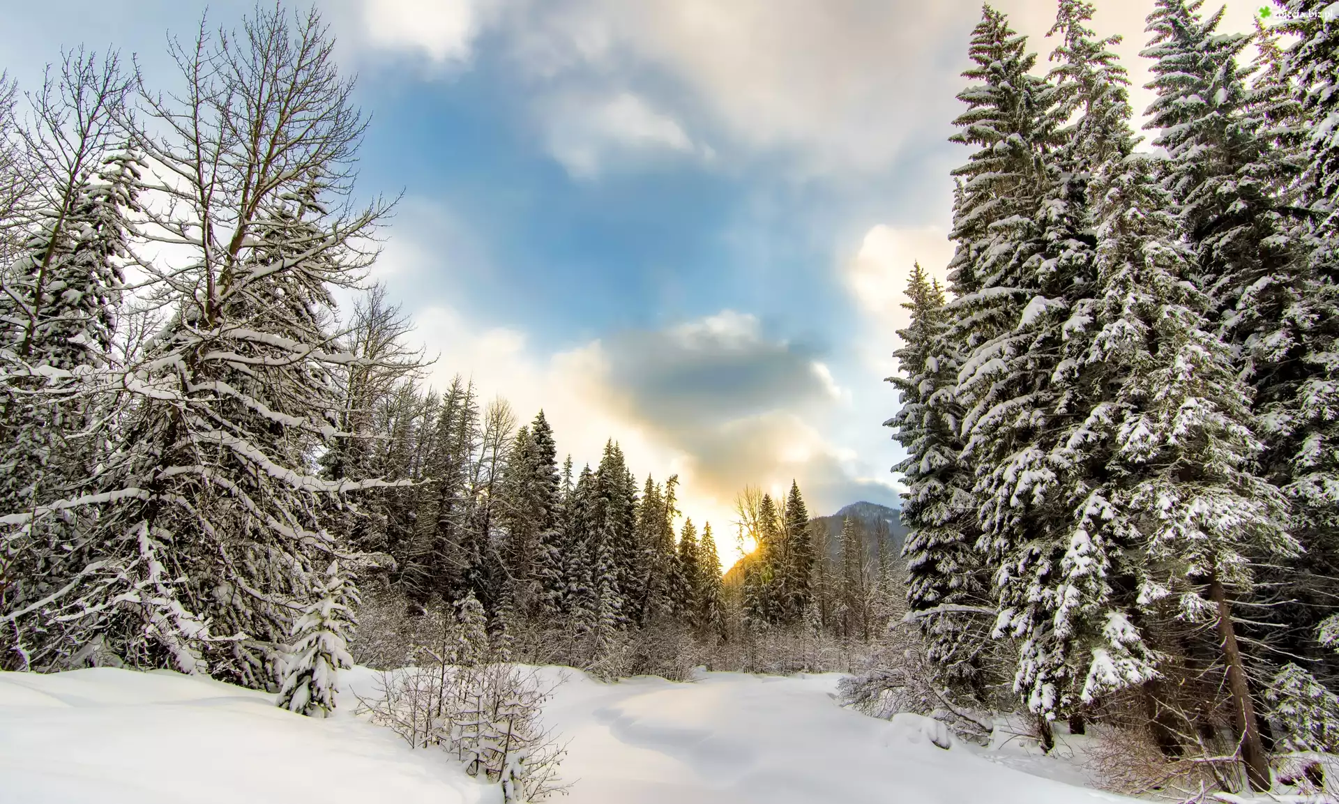 Zdjęcie Zima, Las, Niebo