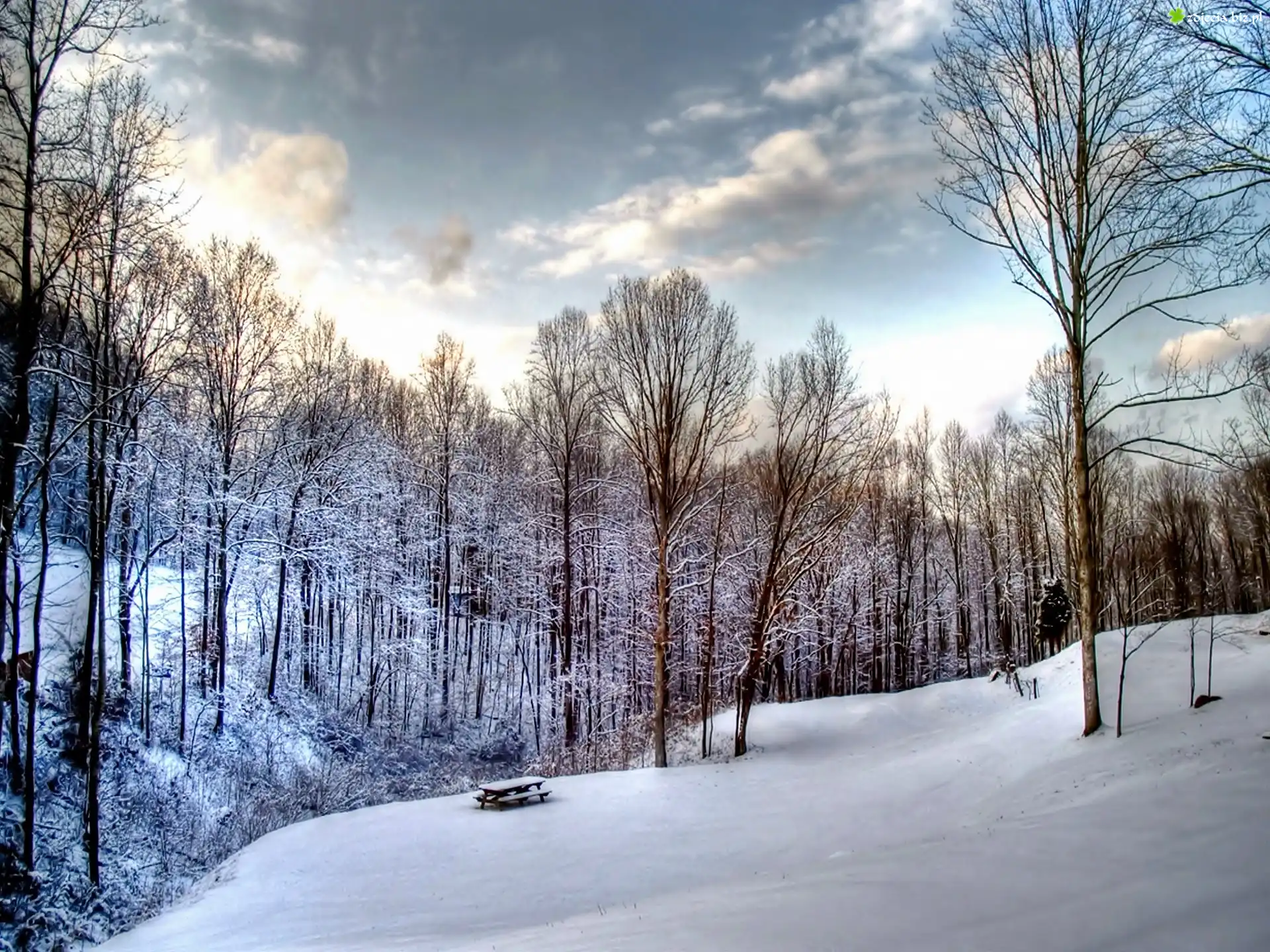Zdjęcie Las, Wzgórza, Zima, Chmury
