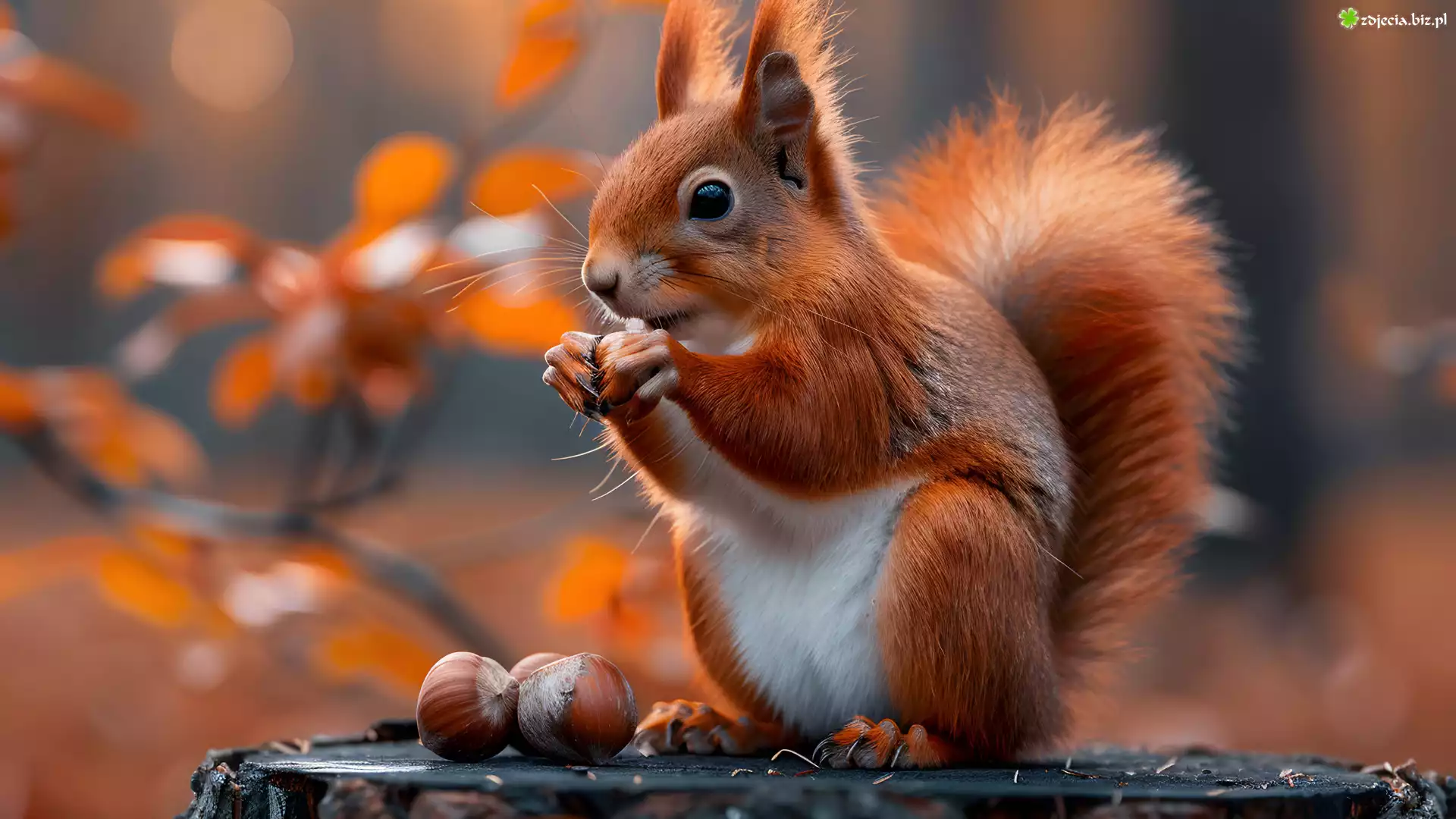 Zdjęcie Wiewiórka, Pień, Orzechy laskowe