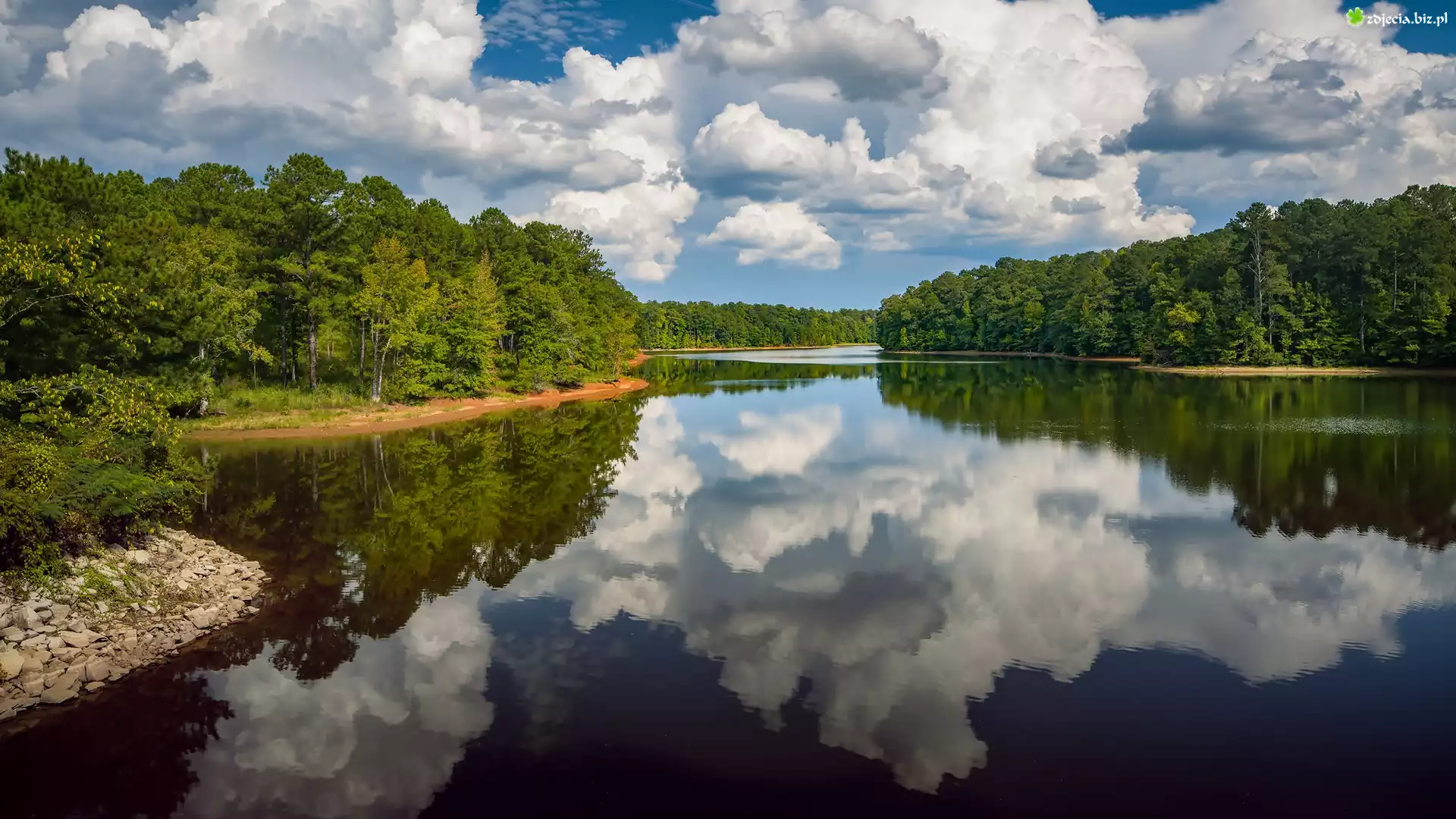 Zdjęcie Lasy, Rzeka, Chmury, Odbicie