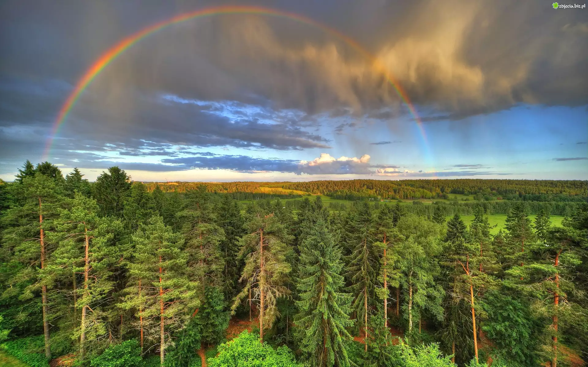 Zdjęcie Lasy, Łąki, Tęcza, Chmury