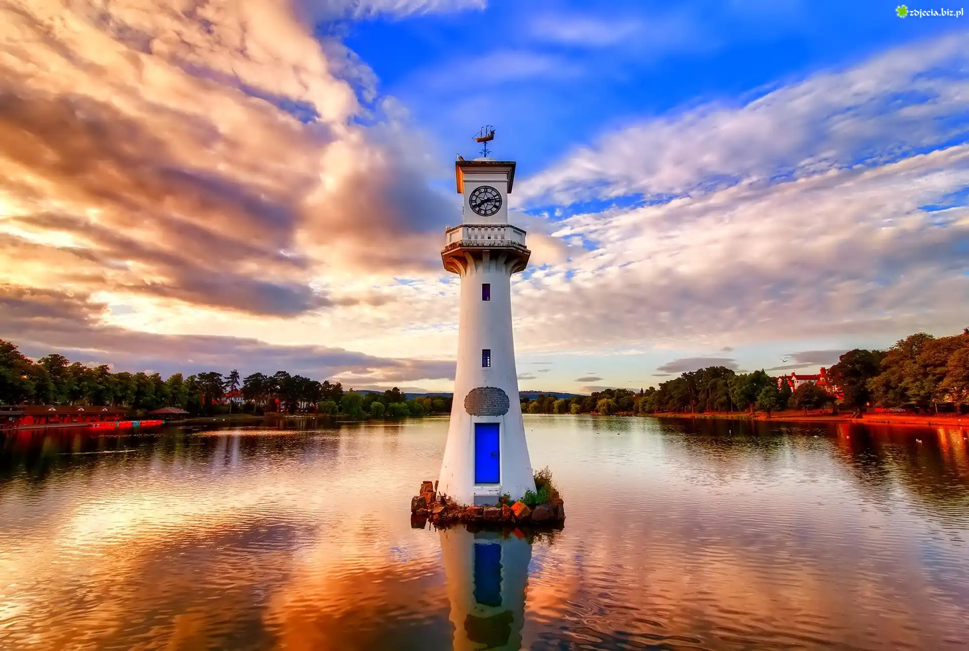 Zdjęcie Latarnia Morska, Lasy, Chmury, Woda