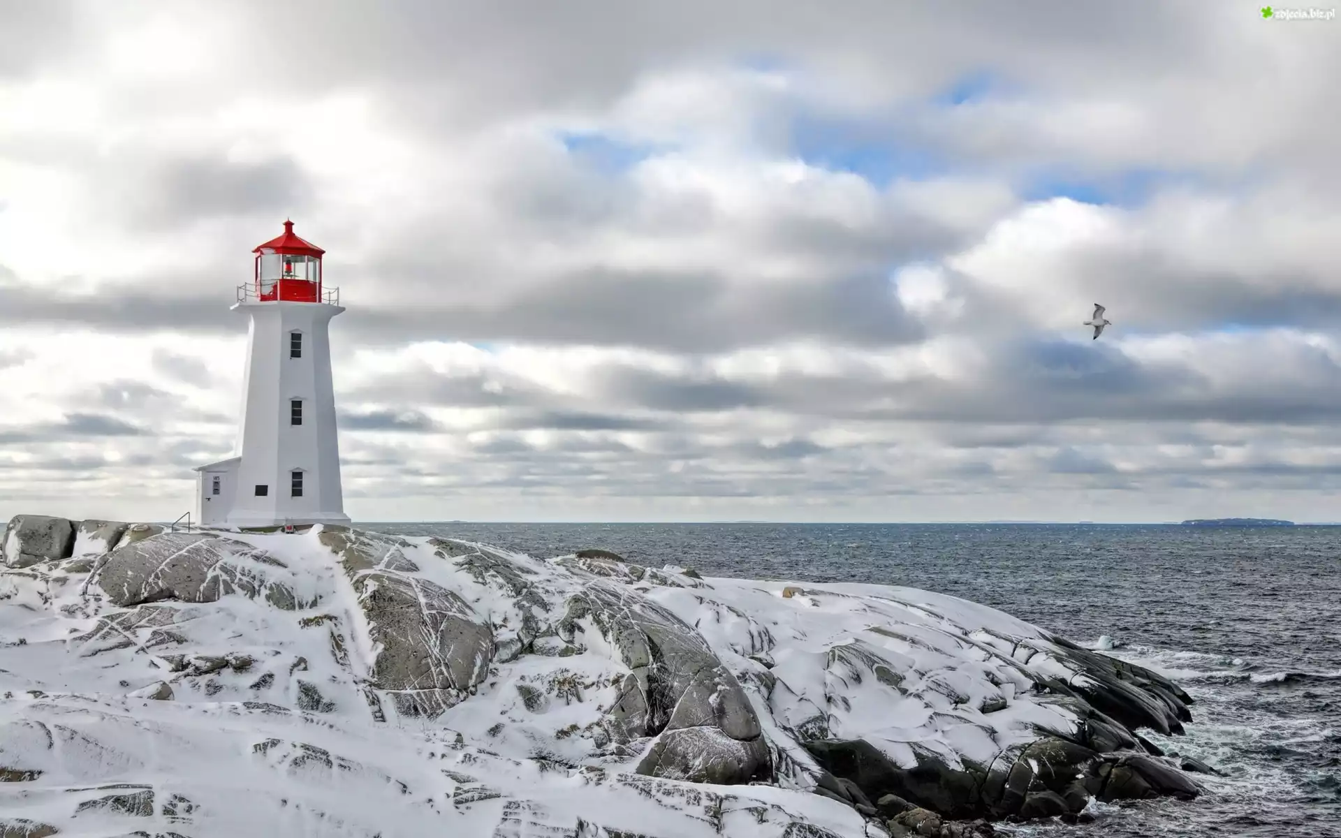 Zdjęcie Latarnia Morska, Ocean, Skały, Chmury, Zima