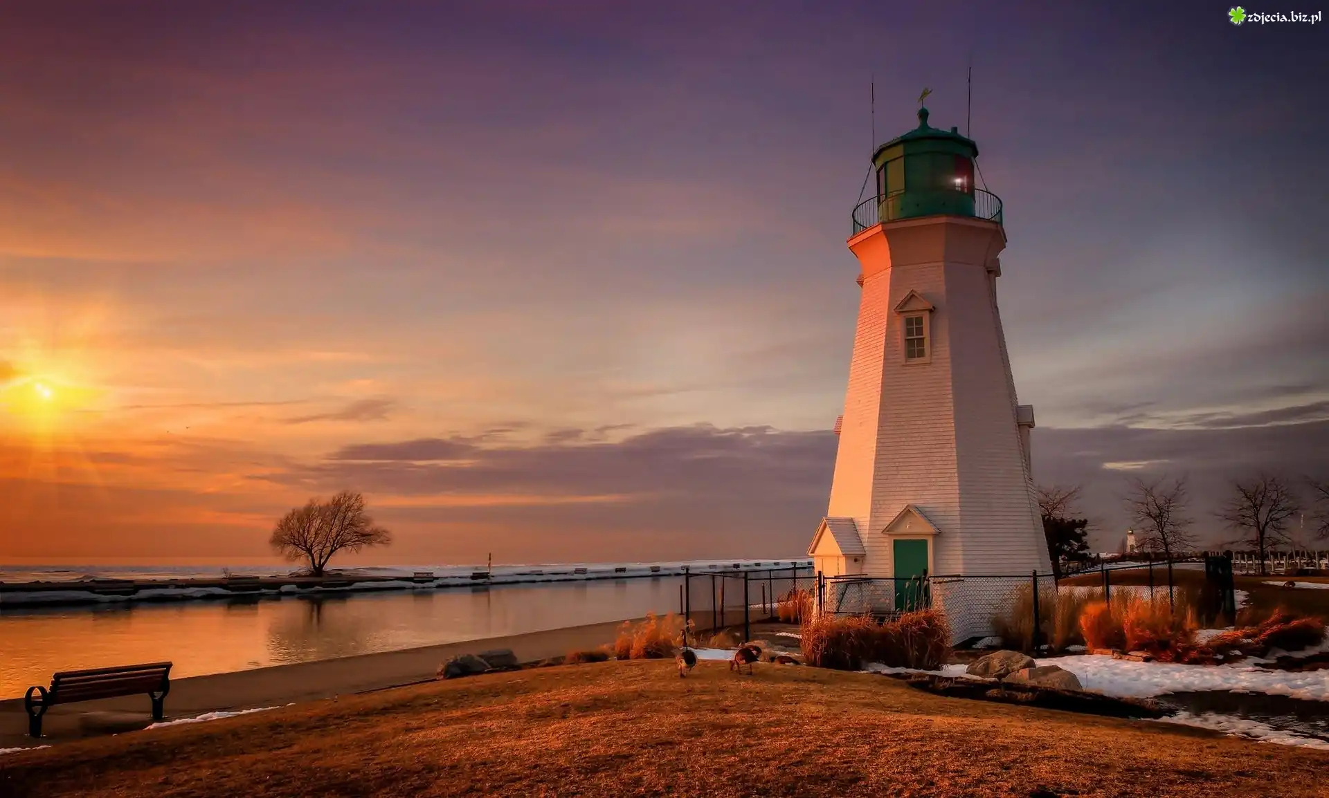 Zdjęcie Latarnia, Morska, Wybrzeże, Wschód, Słońca