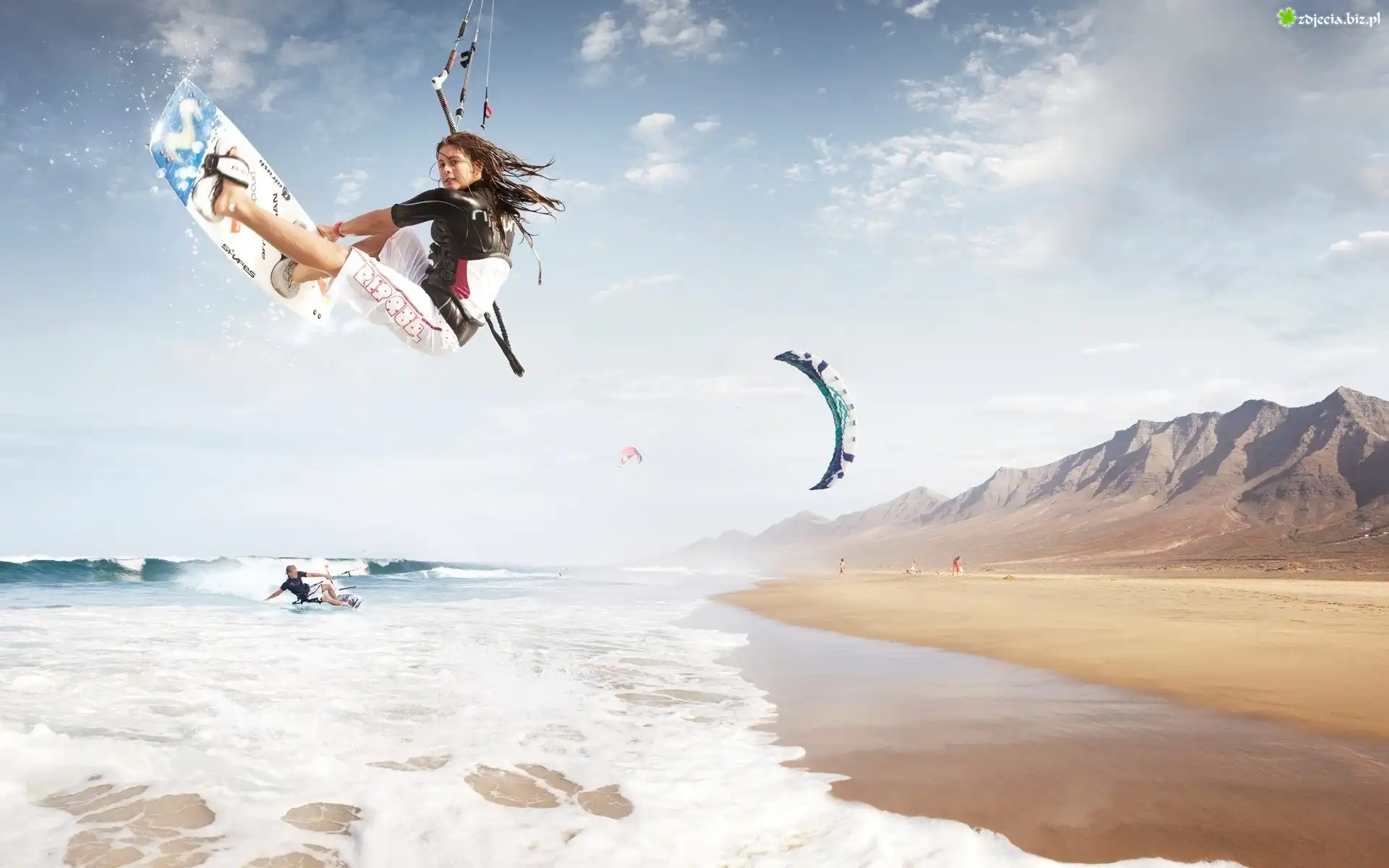 Zdjęcie, Kitesurferzy, Latawiec, Deska