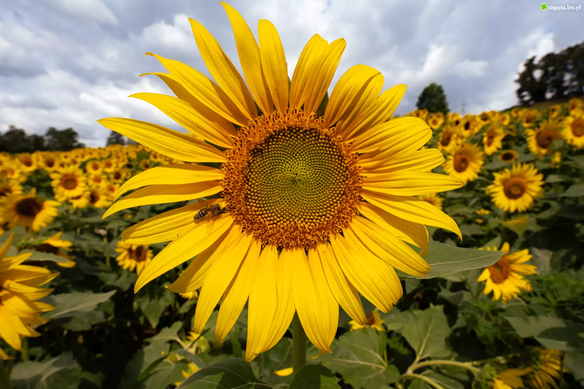 Zdjęcie Kwiaty, Słoneczniki, Pszczoła, Lato