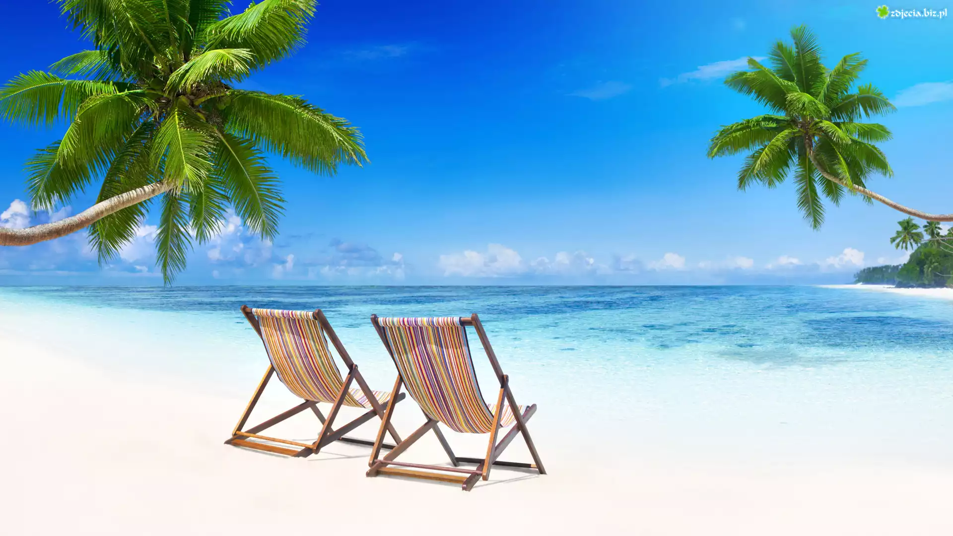 Zdjęcie, Lato, Plaża, Morze, Palmy, Leżaki, Wakacje
