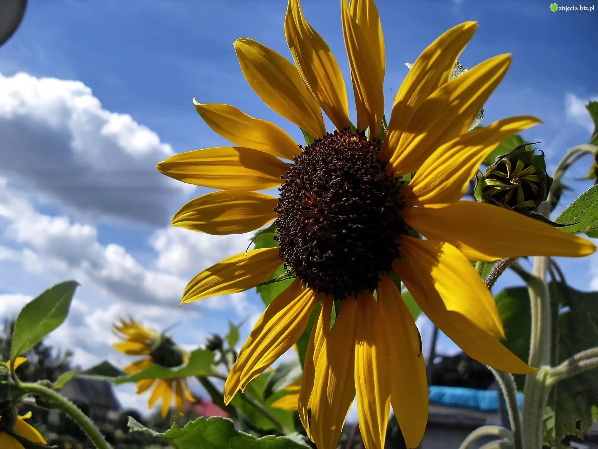 Zdjęcie Lato, Ogród, Słonecznik, Niebo, Chmury