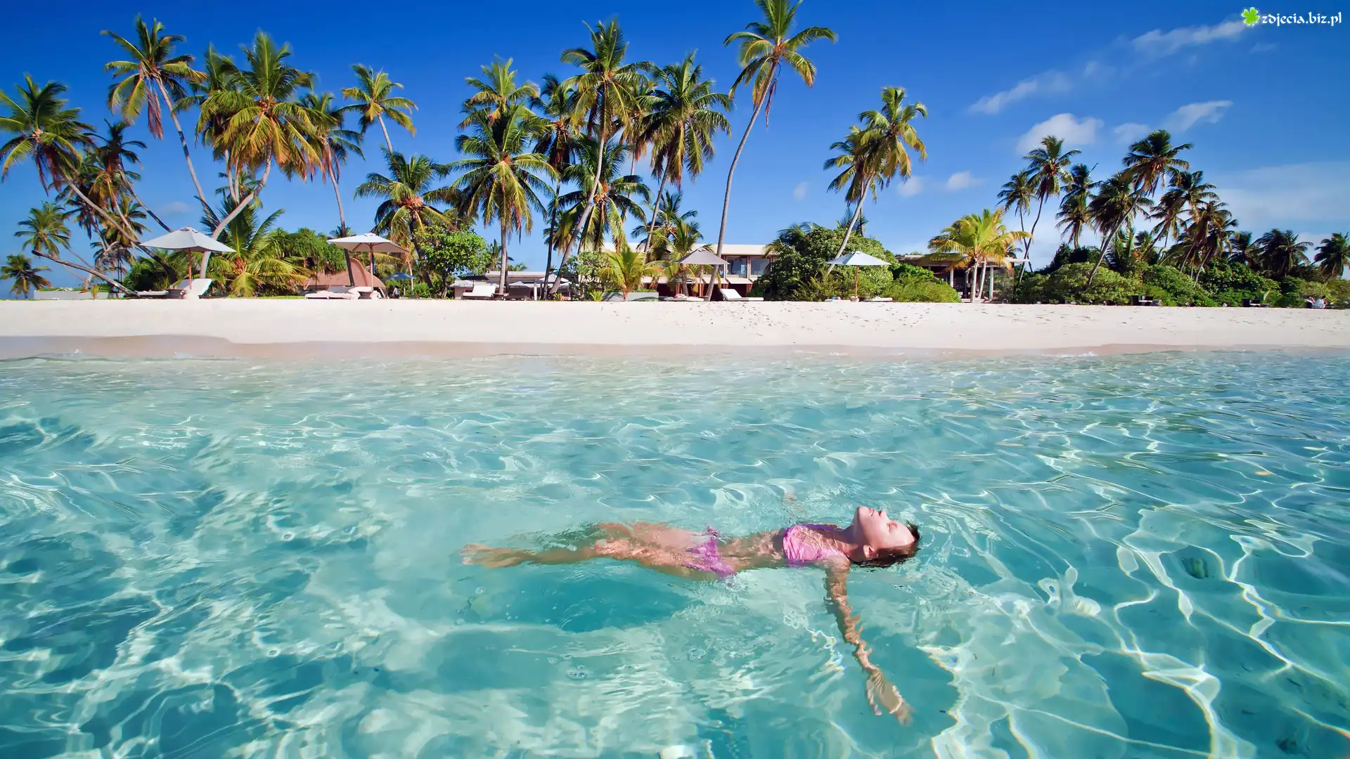 Zdjęcie Lato, Morze, Dziewczyna, Plaża, Palmy, Wakacje