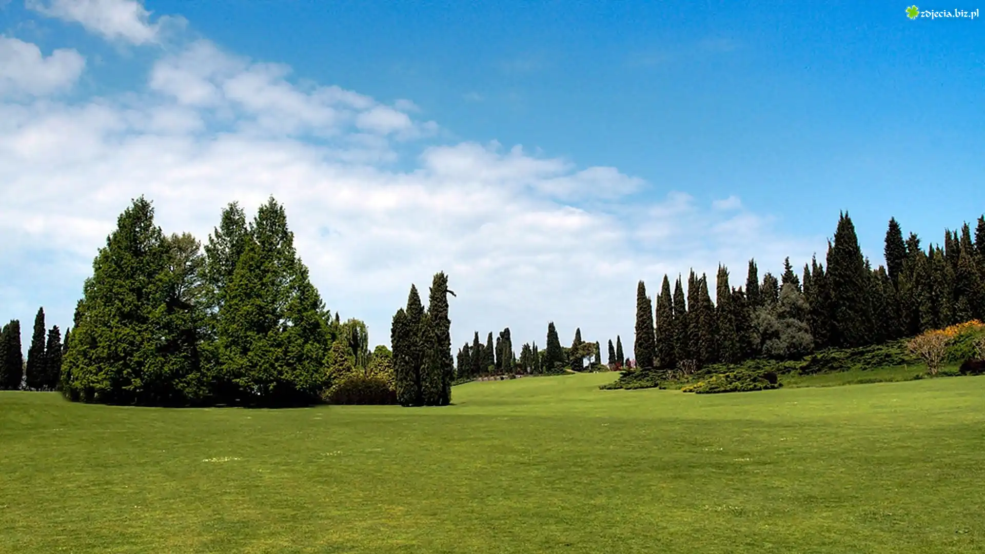 Zdjęcie Lato, Park, Trawnik, Obłoki