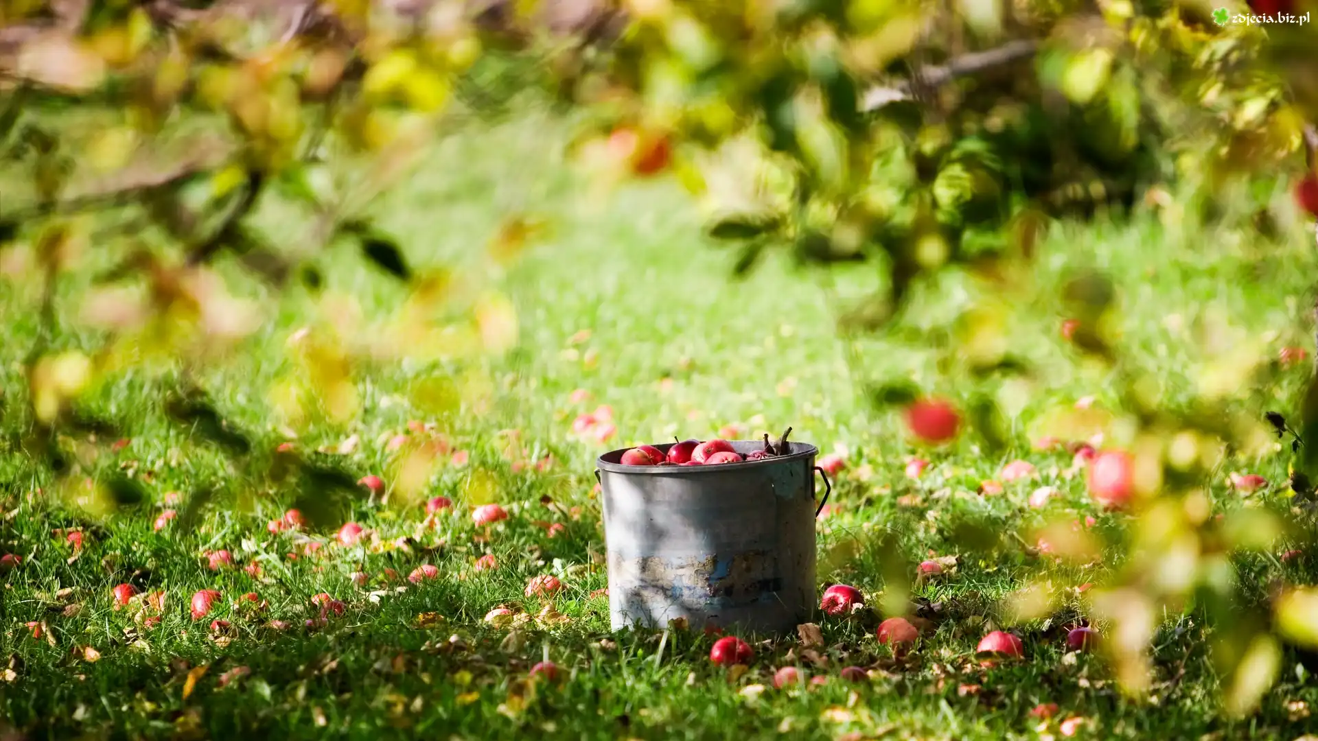 Zdjęcie Lato, Jabłka, Wiaderko, Liście