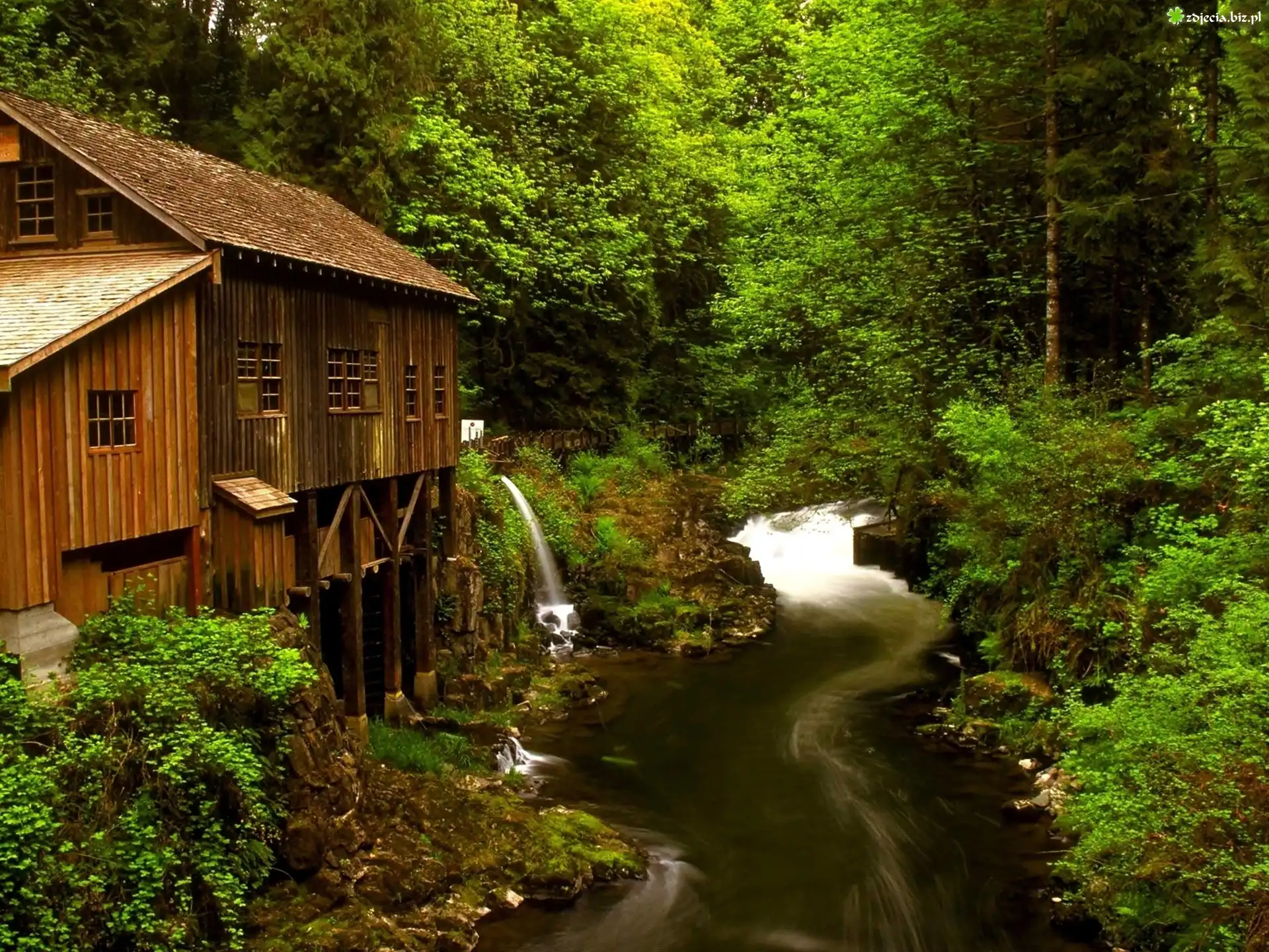 Zdjęcie Lato, Las, Rzeka, Zabudowania, Szopa