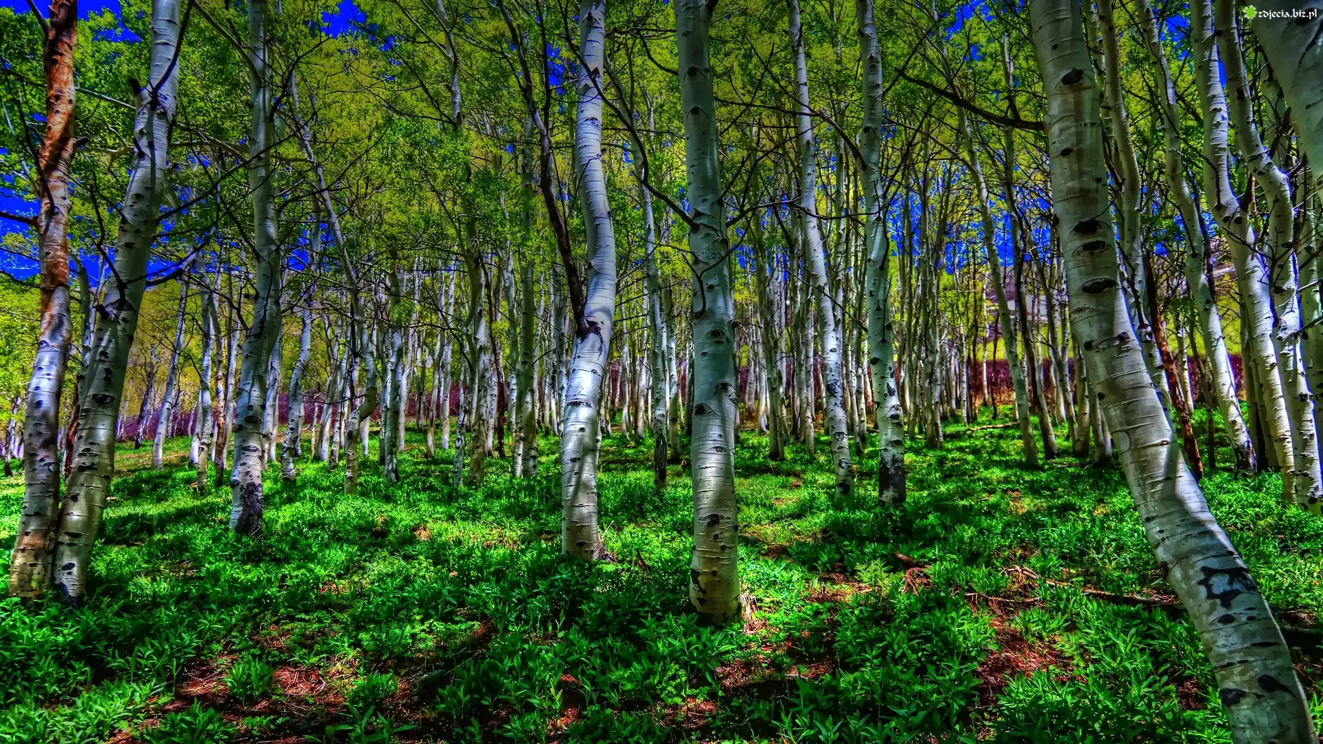 Zdjęcie Lato, Brzozy, Zielone, Krzaki