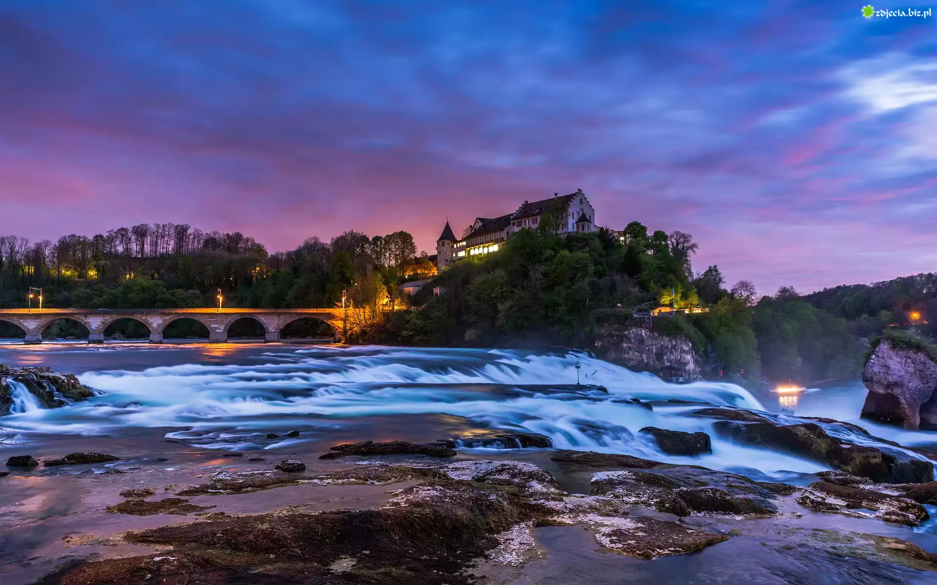 Zdjęcie Wodospad Rheinfall, Most, Skała, Zamek Laufen, Neuhausen am Rheinfall, Kanton Szafuza, Szwajcaria |
