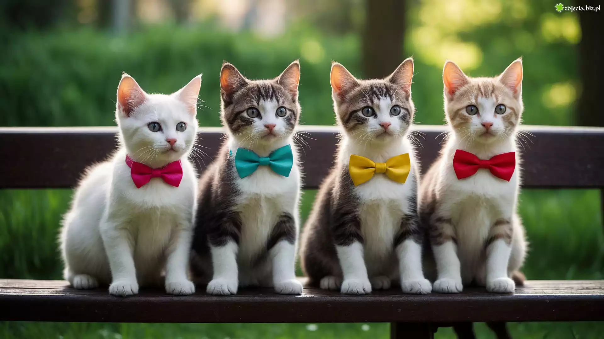 Zdjęcie Cztery, Koty, Muszki, Ławka