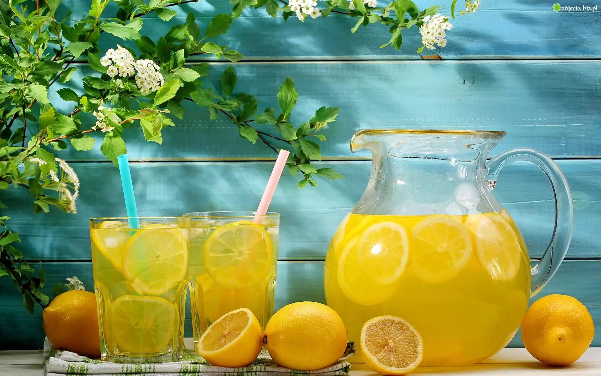 Zdjęcie Lemoniada, Cytryny, Napoje, Kwiaty, Lato