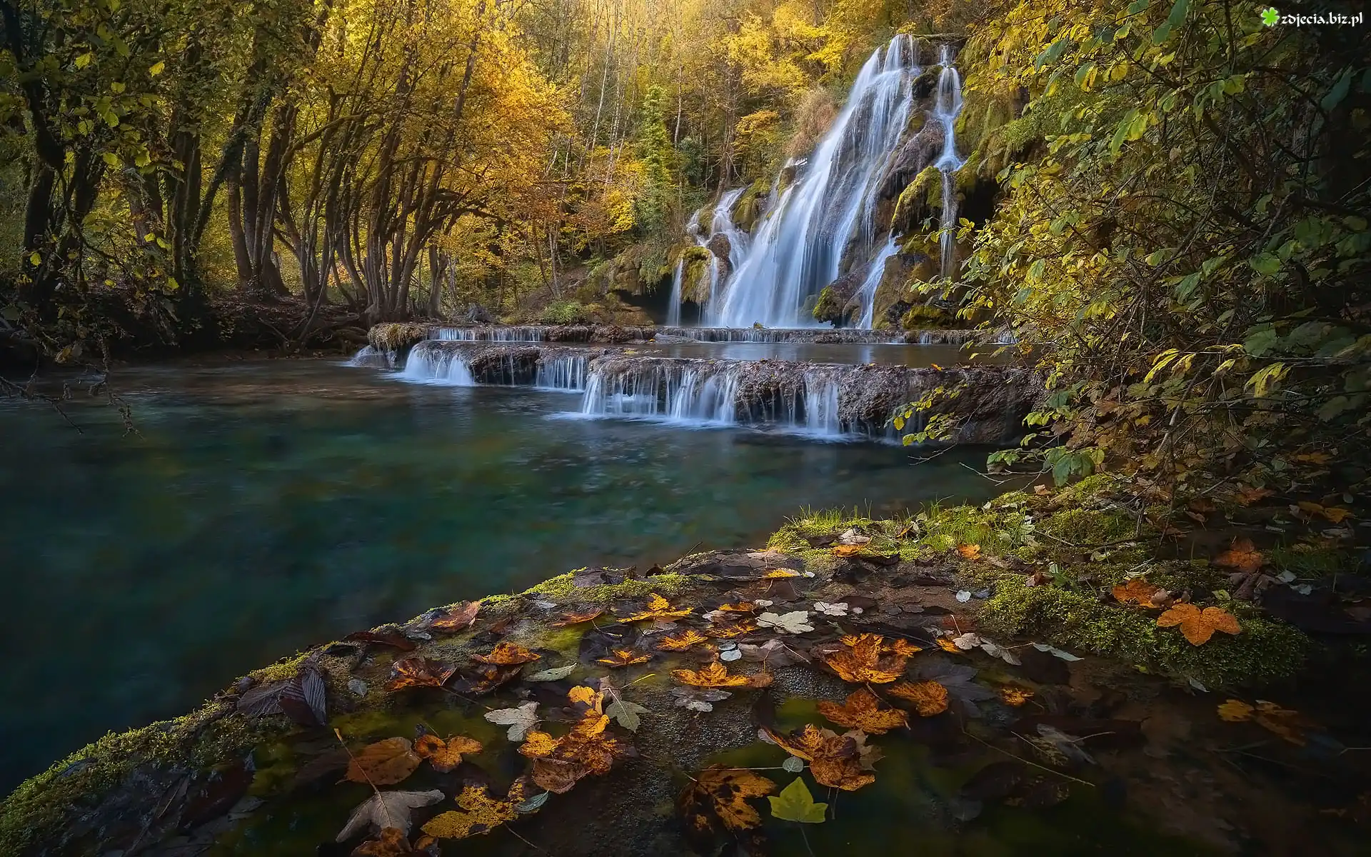 Zdjęcie, Wodospad, Kaskada, Cascades de tufs, Baume Les Messieurs, Departament Jura, Francja