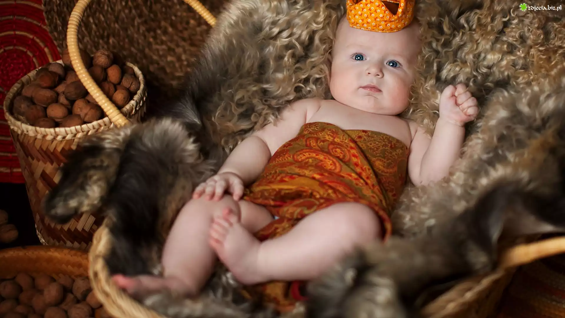Zdjęcie Leżące, Dziecko, Chusta, Orzechy, Kosz