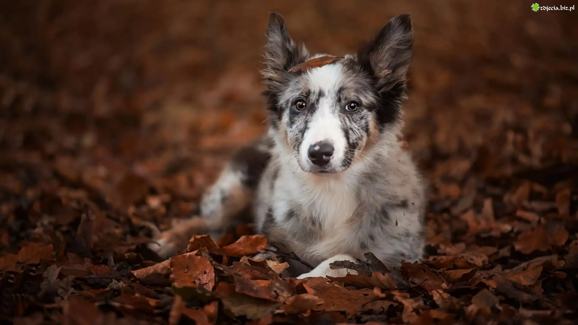 Zdjęcie Leżący, Border collie, Liście