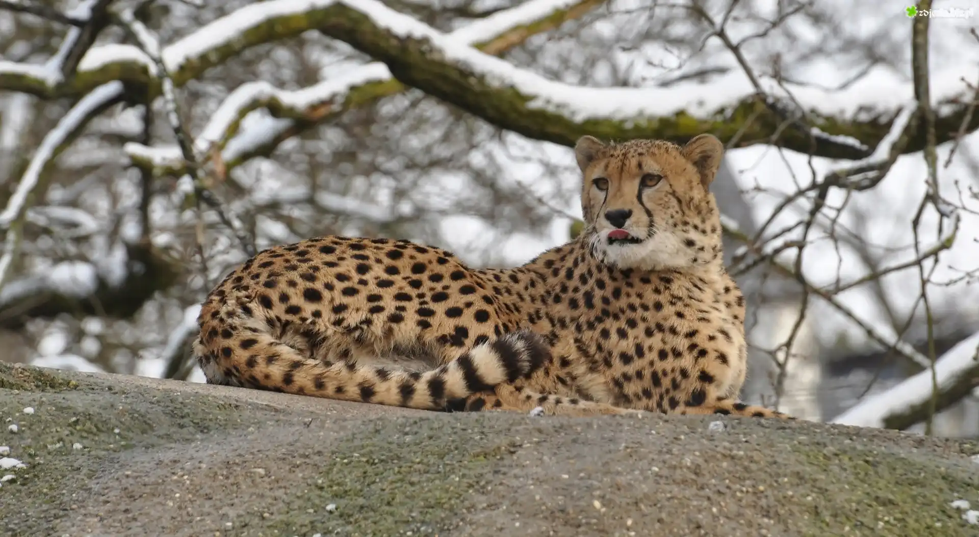 Zdjęcie Leżący, Gepard, Gałęzie, Zima