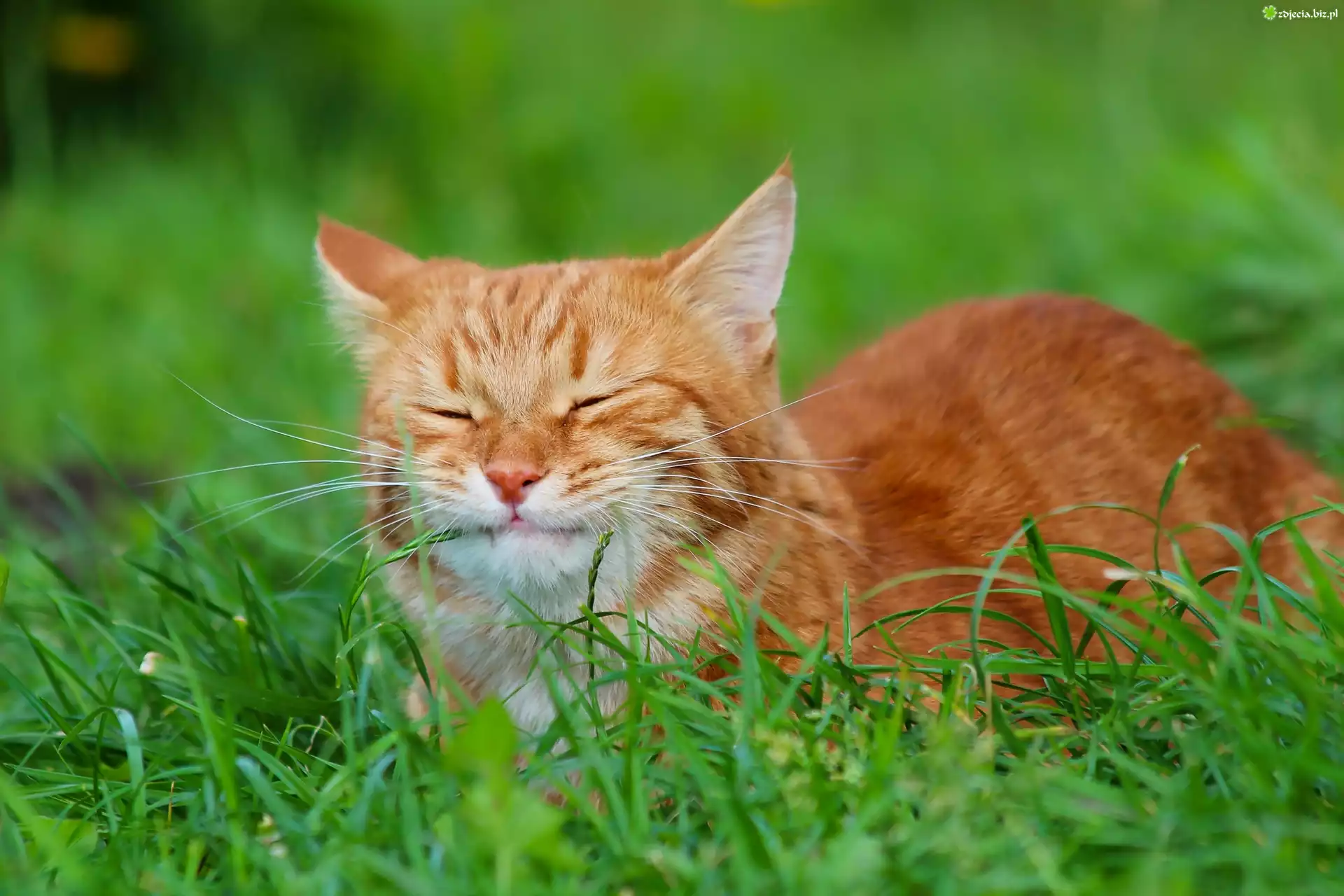 Zdjęcie Leżący, Rudy, Kot, Trawa