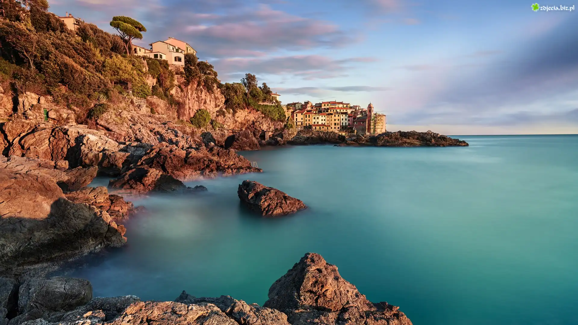 Zdjęcie Morze Liguryjskie, Wybrzeże, Skały, Domy, Tellaro, Liguria, Włochy