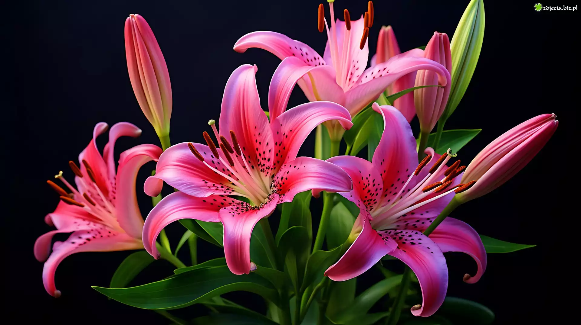 Zdjęcie Różowe, Lilie, Kwiaty, Pąki, Grafika