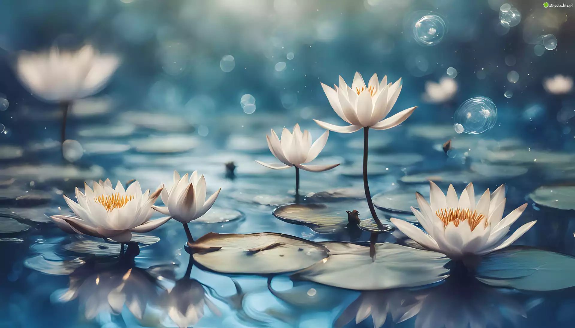 Zdjęcie, Białe, Lilie wodne, Nenufary, Grafika