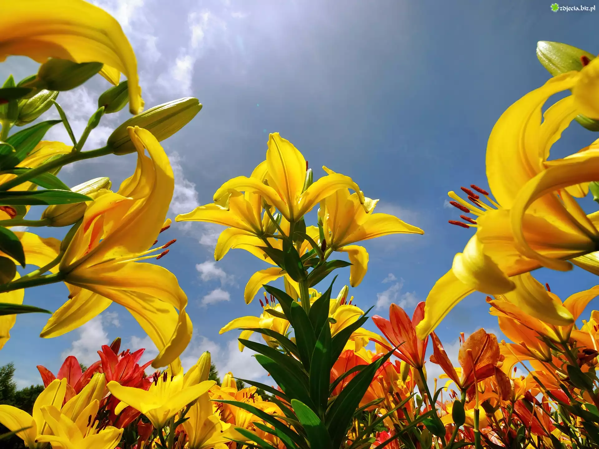 Zdjęcie Żółte, Lilie, Niebo