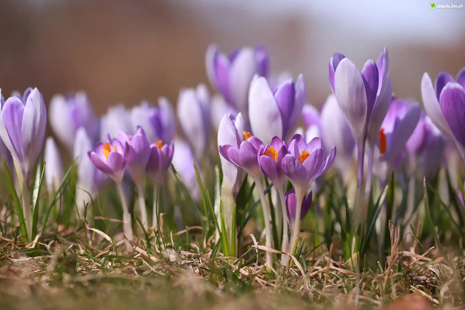 Zdjęcie Fioletowe, Liliowe, Krokusy, Kwiaty, Wiosenne