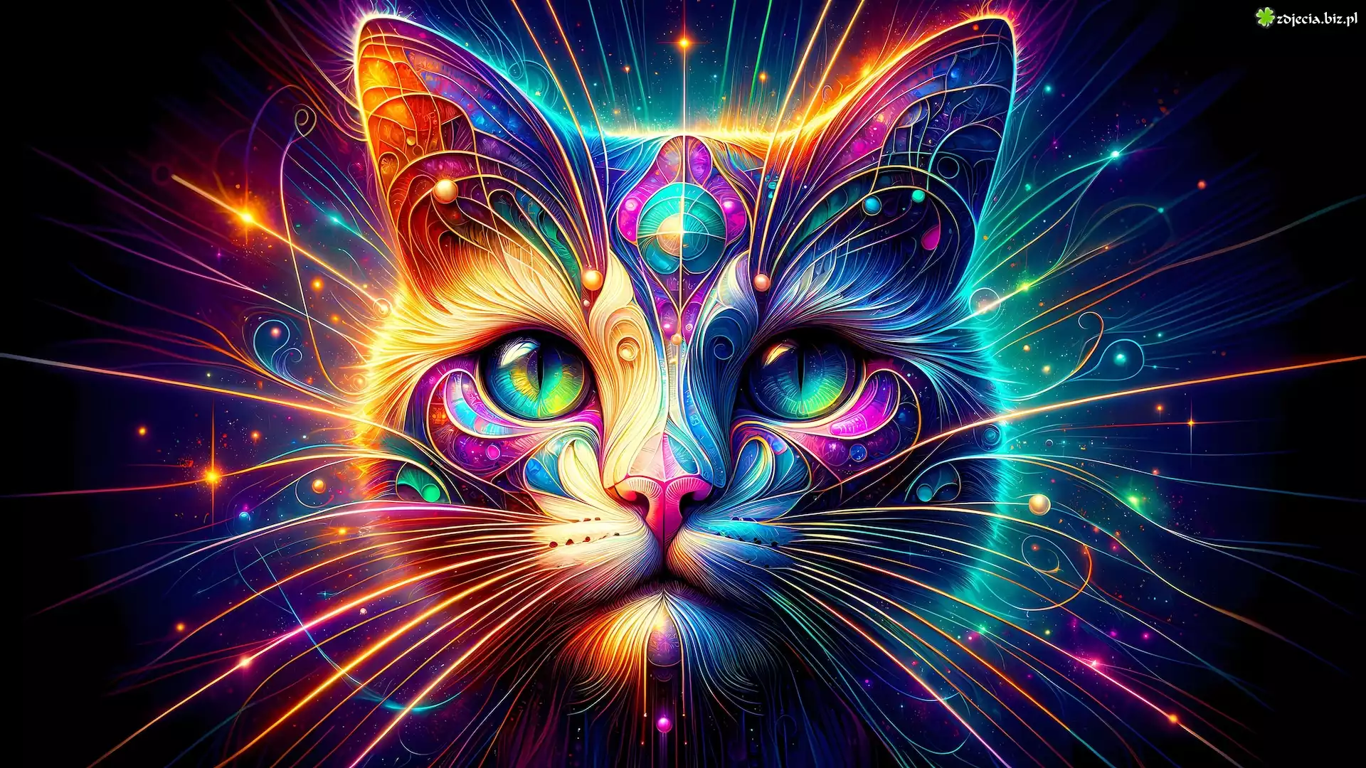 Zdjęcie Kot, Głowa, Wąsy, Linie, Kolorowe, Grafika