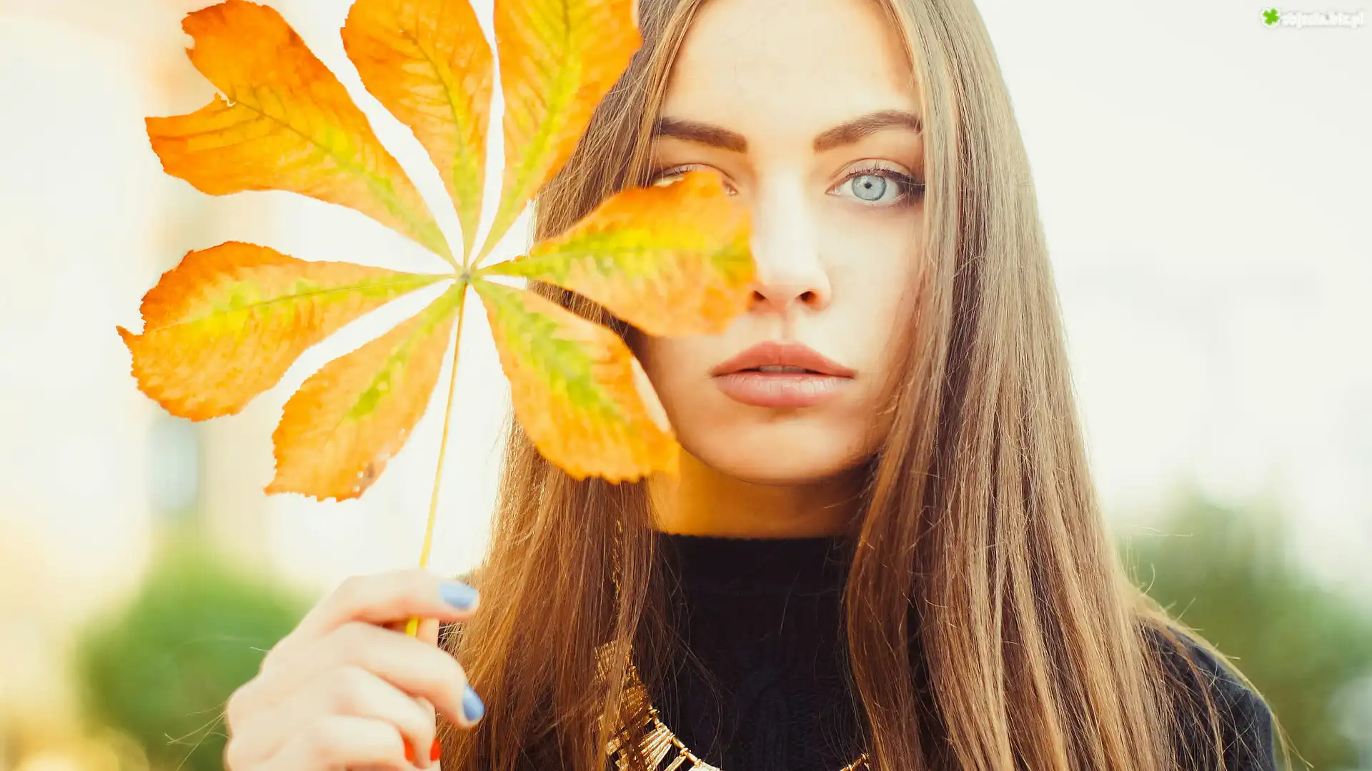 Zdjęcie Dziewczyna, Liść, Kasztanowca