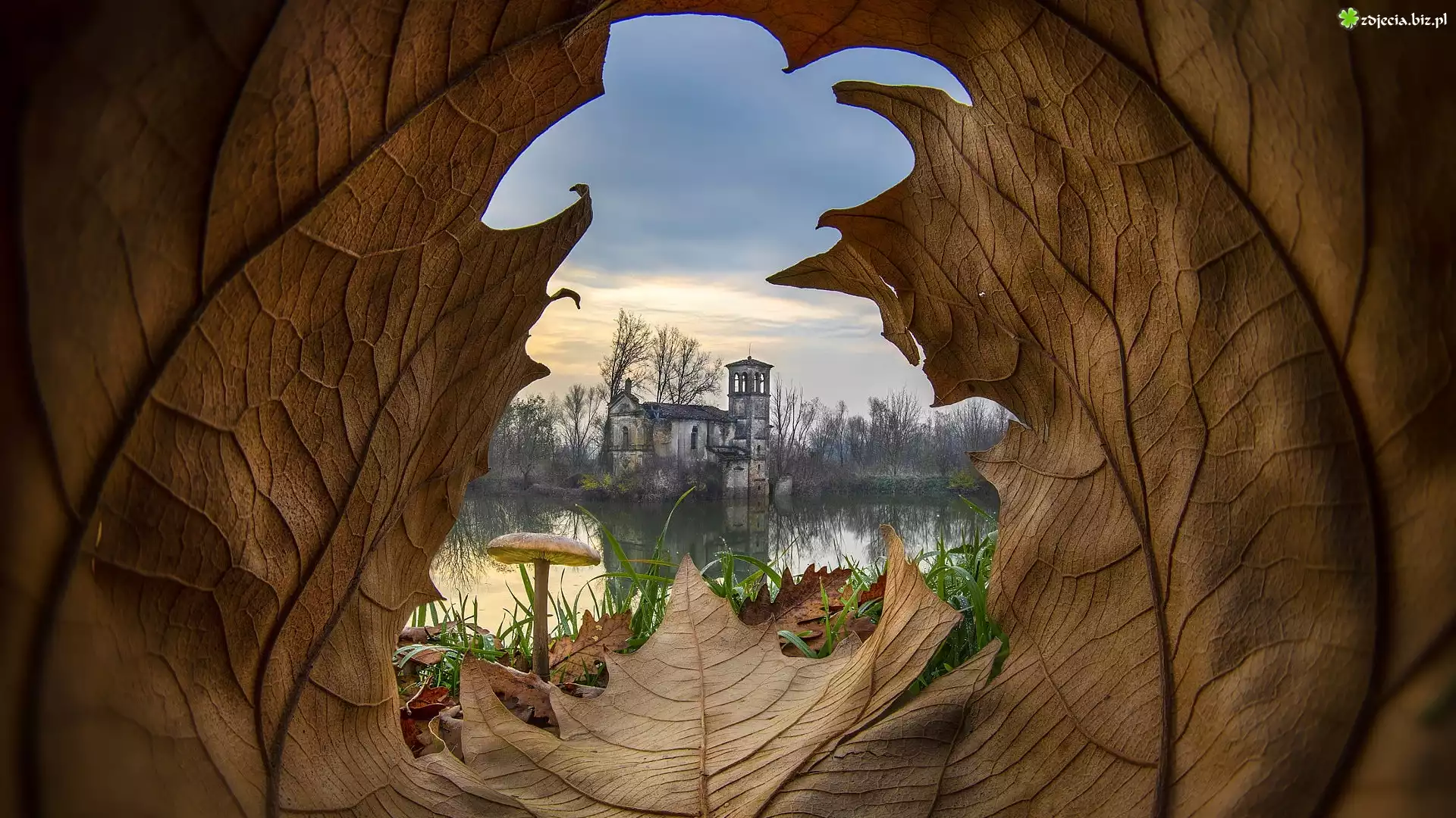 Zdjęcie Liść, Budynek, Ruina, Jezioro, Grzyb